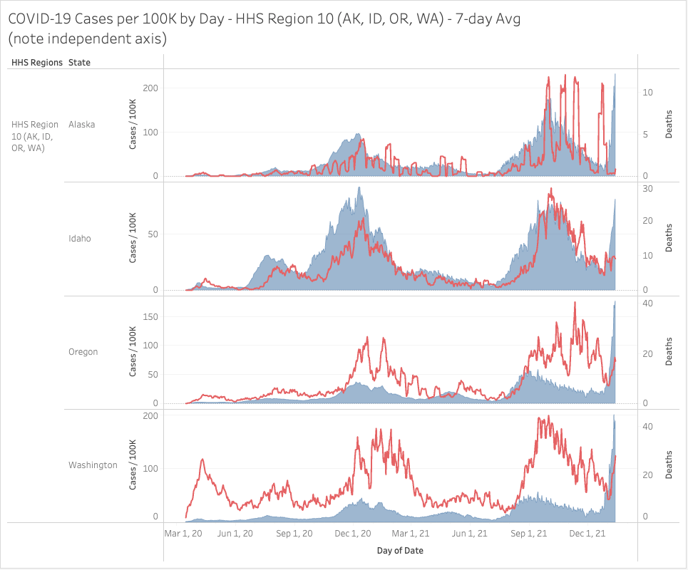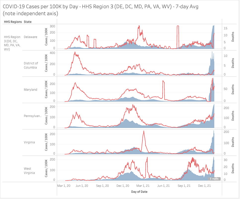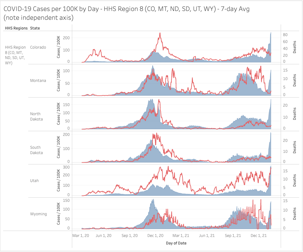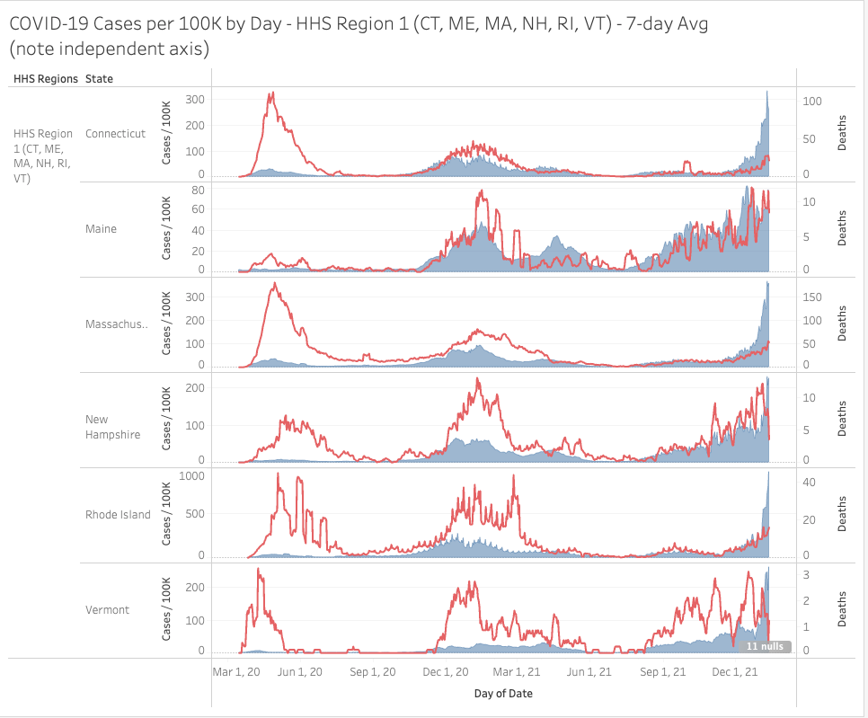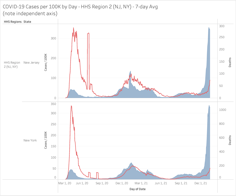 The Northeast (HHS Region 1) continues to soar past logic, even on deaths now in some regions. Still, mortality remains lower in many locations