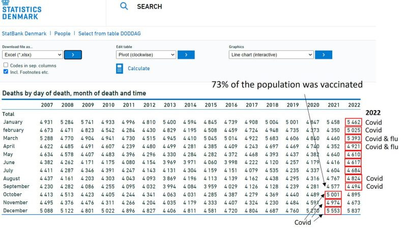 Whatever the exact share of Covid deaths was, it is impossible to reconcile a highly effective vaccine with the excess mortality in Denmark in the past flu year. Is there any epidemiologist on the planet who would claim that, without vaccination, excess mortality in Denmark would have been much higher than 10 percent? Five times as high, if the vaccines were highly effective? Or even just twice as high?