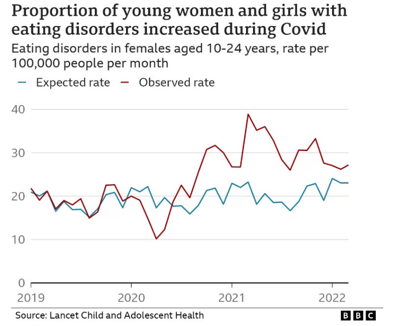 Lockdowns have been blamed for a sharp rise in teenage girls in the UK developing eating disorders and self-harming since 2020. The BBC has the story.