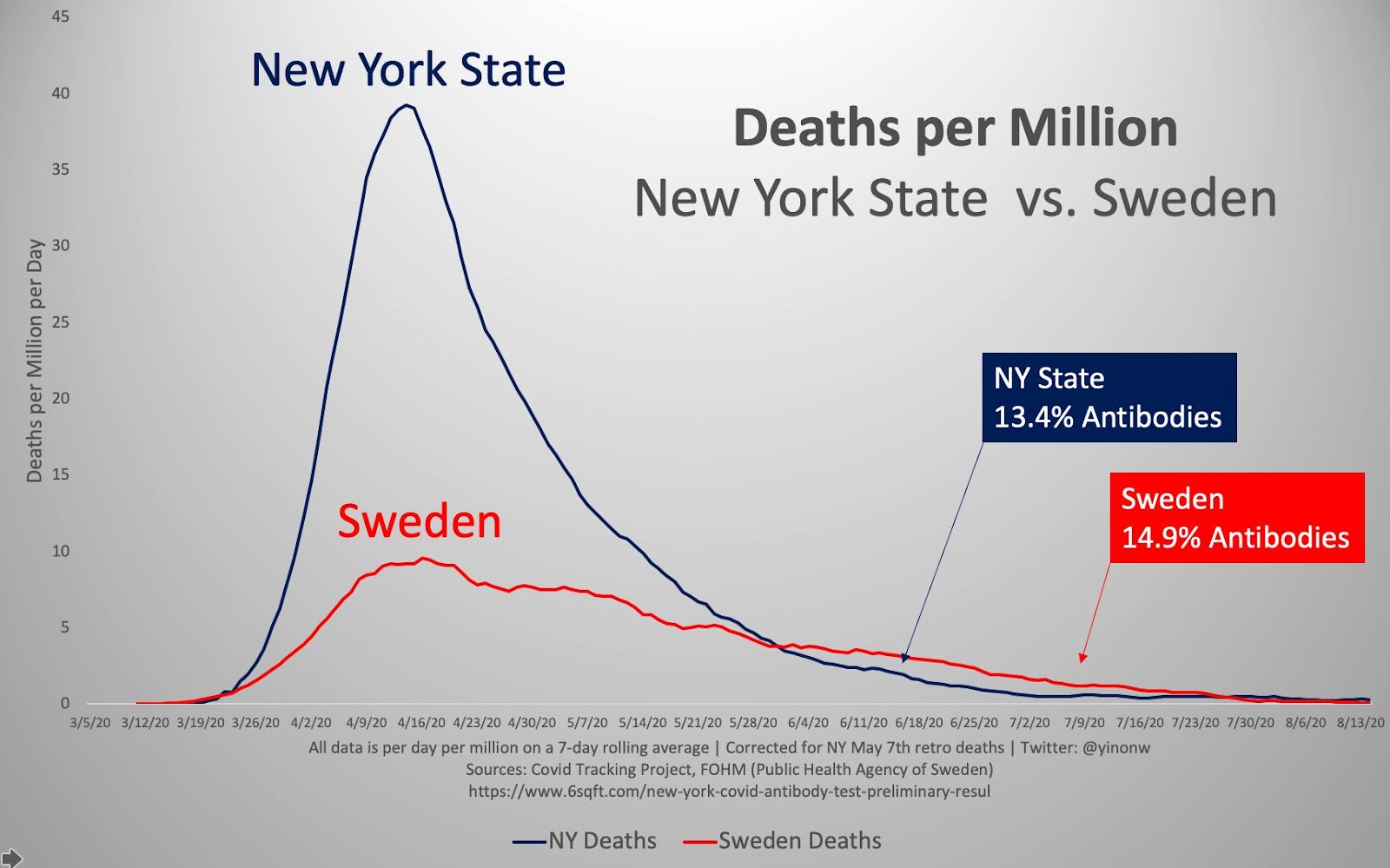 Deaths per Million, New York State vs Sweden.