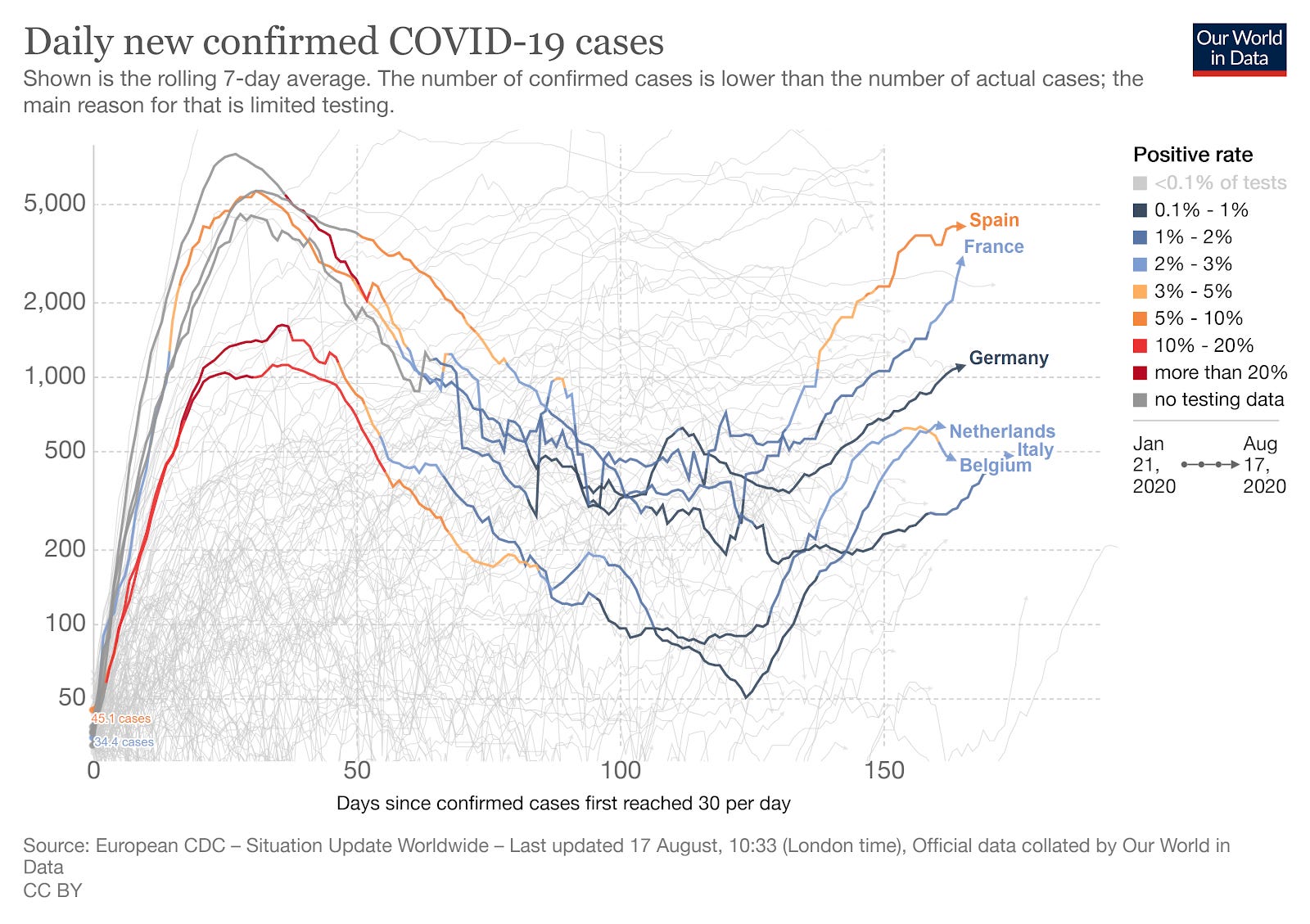 Despite long and hard lockdowns, several European countries are facing a second wave of cases that is reaching the height of the first wave of cases.