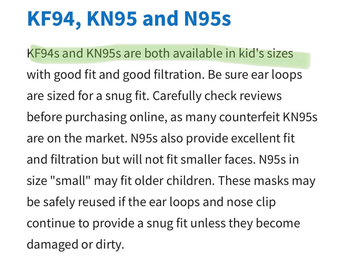 CDPH has published guidelines on masking children which are not only contrary to the data but also fly in the face other governmental agencies They suggest KN94/5’s for children & N95s in “older kids”