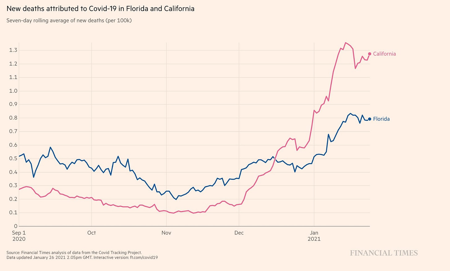 Reminder: Florida lifted *all* Covid-19 restrictions back in September. California has remained in lockdown all along.