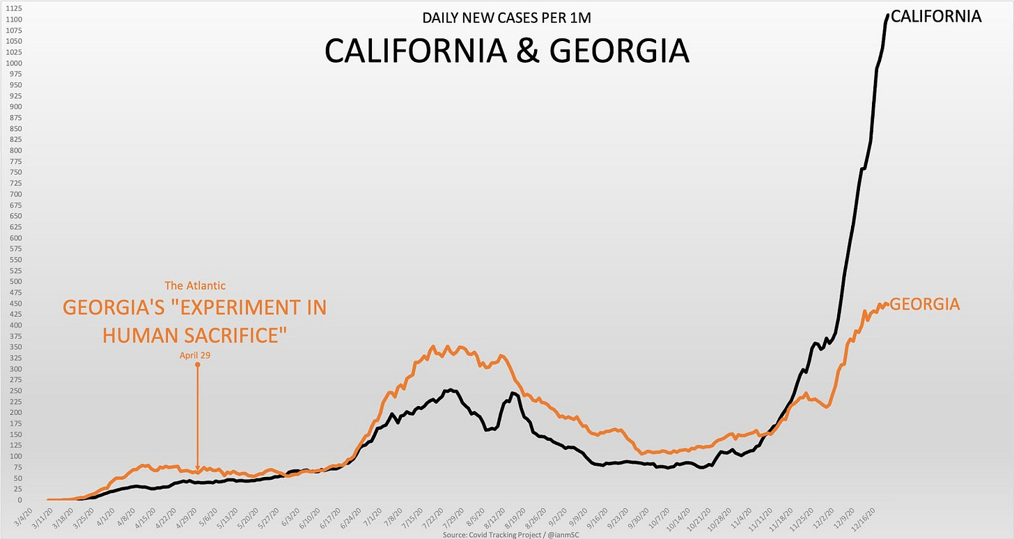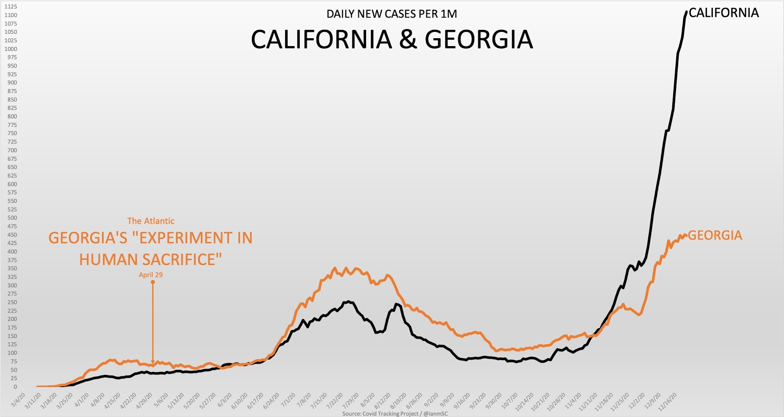 Daily New Cases Per 1M in California and Georgia