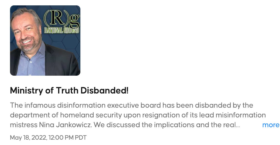 Nina Jankowicz, the director of the infamous Misinformation Executive Board, has offered her resignation and the entire project has been put on “pause.” The withering critiques from this corner of the Internet and beyond pushed them over the edge. Gotta love the non de plume that someone devised: “Scary Poppins.”