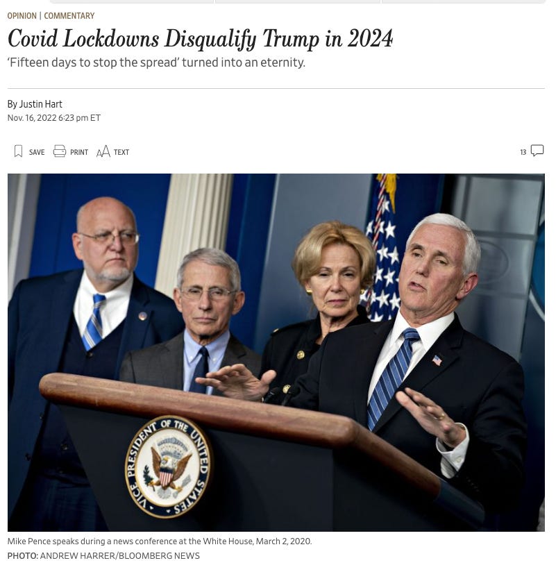 My WSJ Oped: Covid Lockdowns Disqualify Trump in 2024
