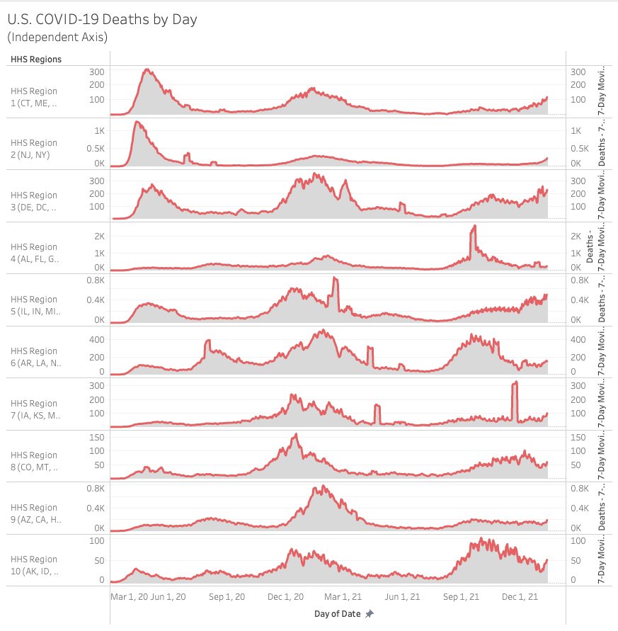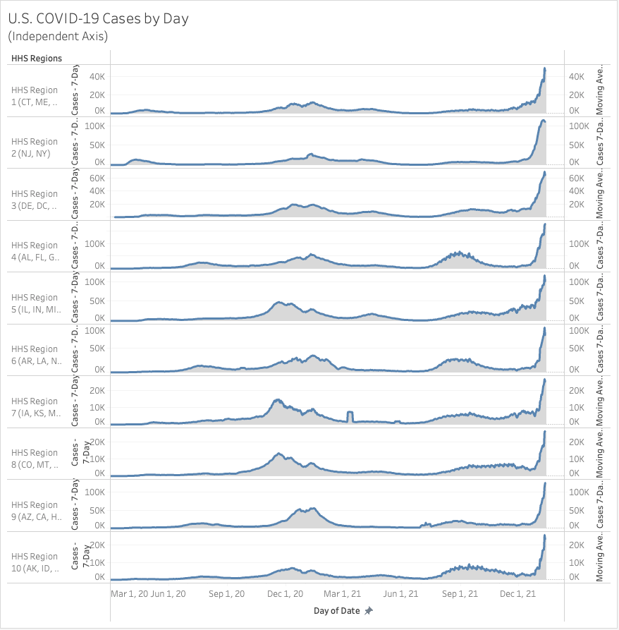 National and Regional ChartsQuick look at the chartsJustin HartJan 13, 2022304ShareHere’s what we see from the NYTimes dataset and the HHS Hospital data on a national and regional basis. PreviousNext