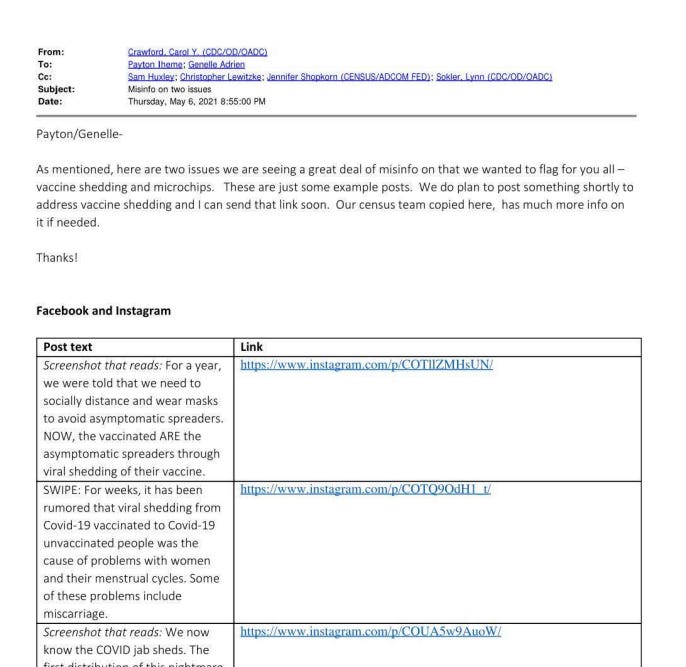 CDC and Biden administration officials coordinated its COVID “misinformation” response with Facebook and Twitter by holding regular “be-on-the-lookout” (BOLO) meetings and by providing examples of the types of messages that contradicted the government’s message and it wanted censored.