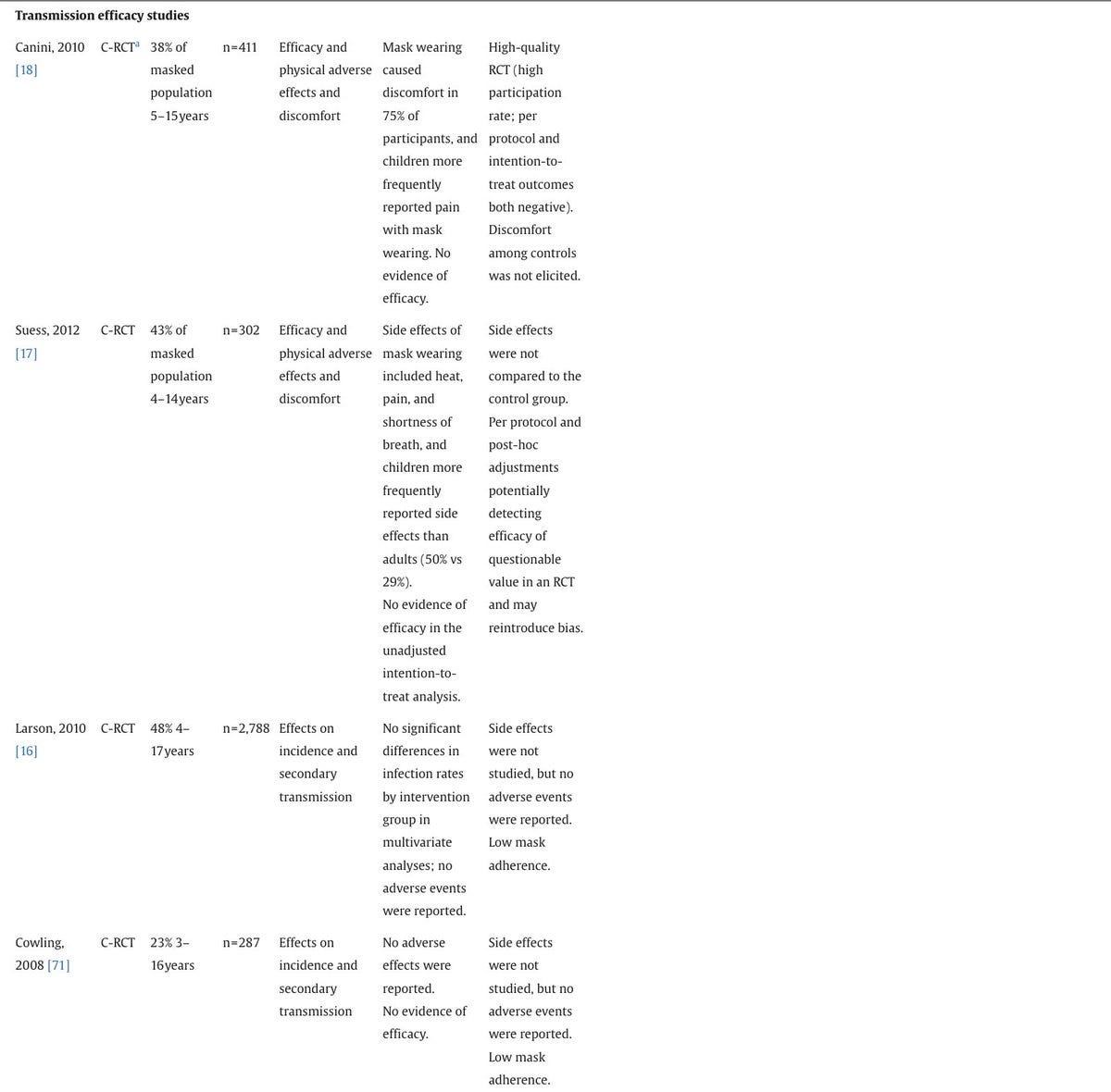 Negative Results in RCTs: Previous cluster RCTs that included children (23-48% of participants) did not show a significant benefit of mask-wearing in preventing viral respiratory infections.