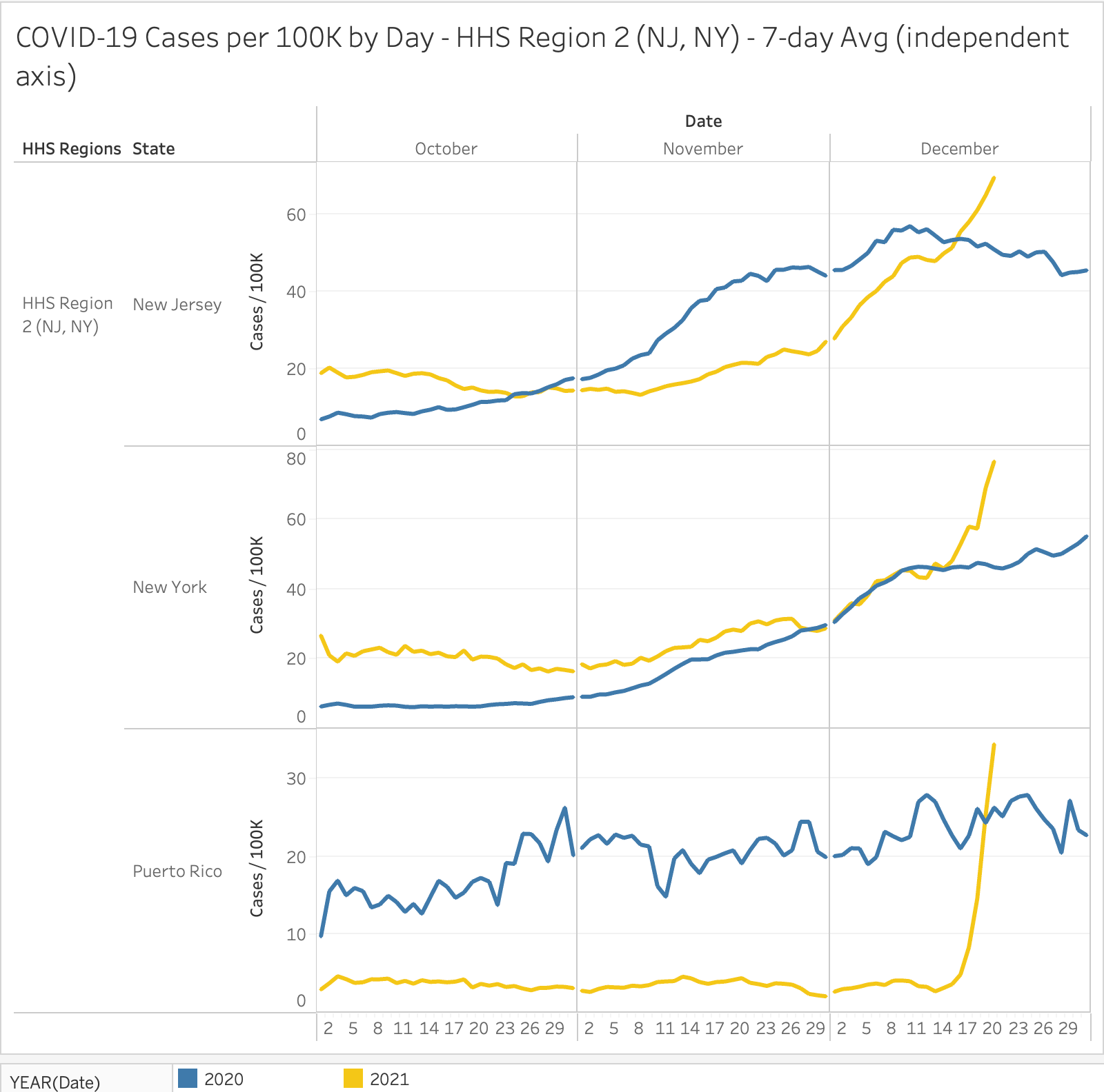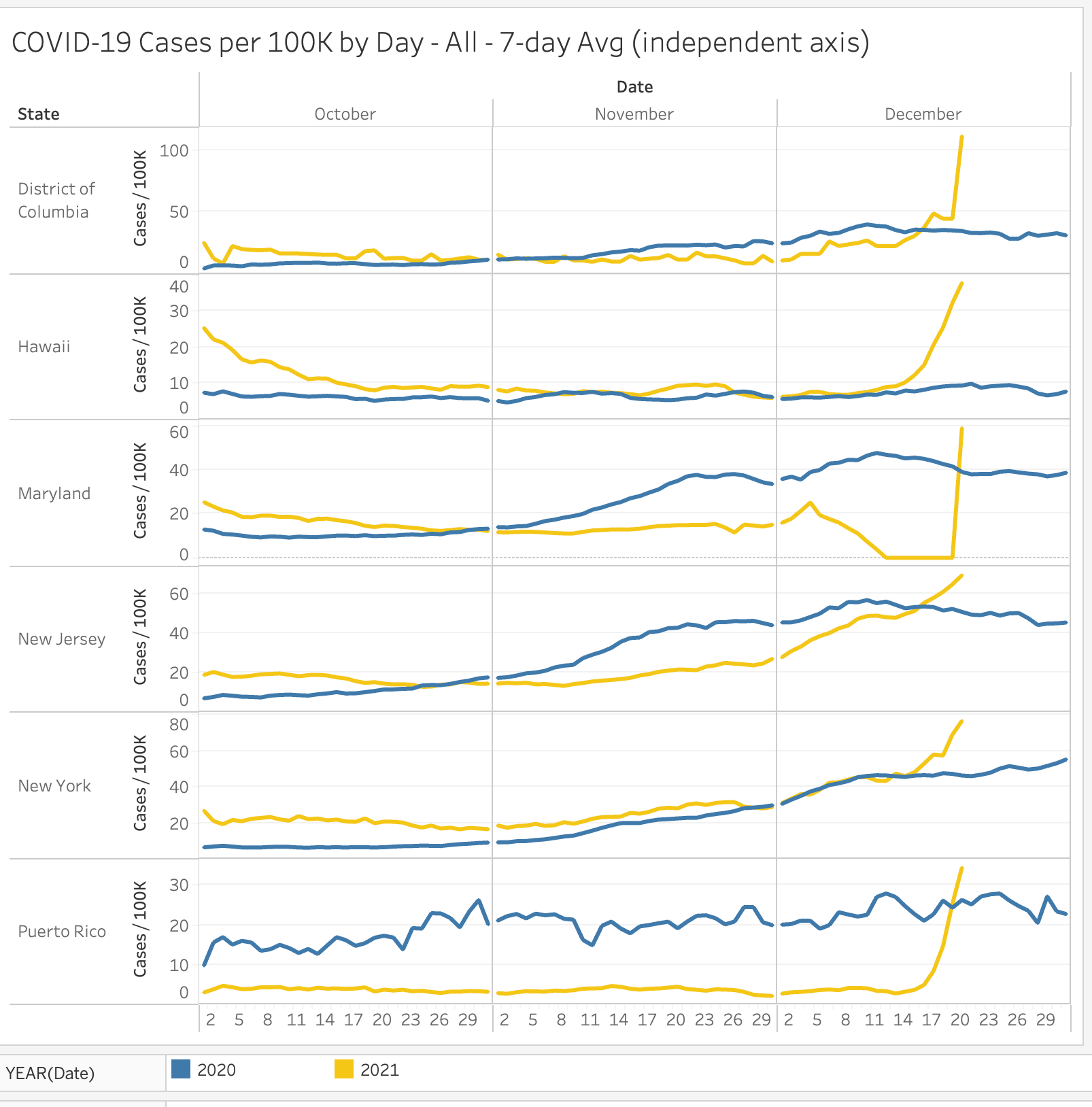 Omicron is here. There are some extraordinary numbers being put up. Check out these select states/regions and their near vertical take-offs. DC, HI, MD, NJ, NY, PR