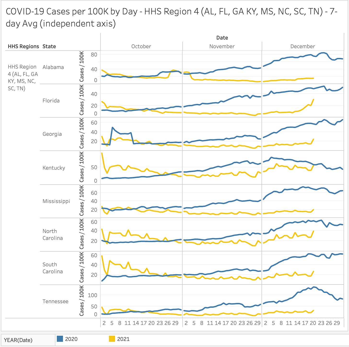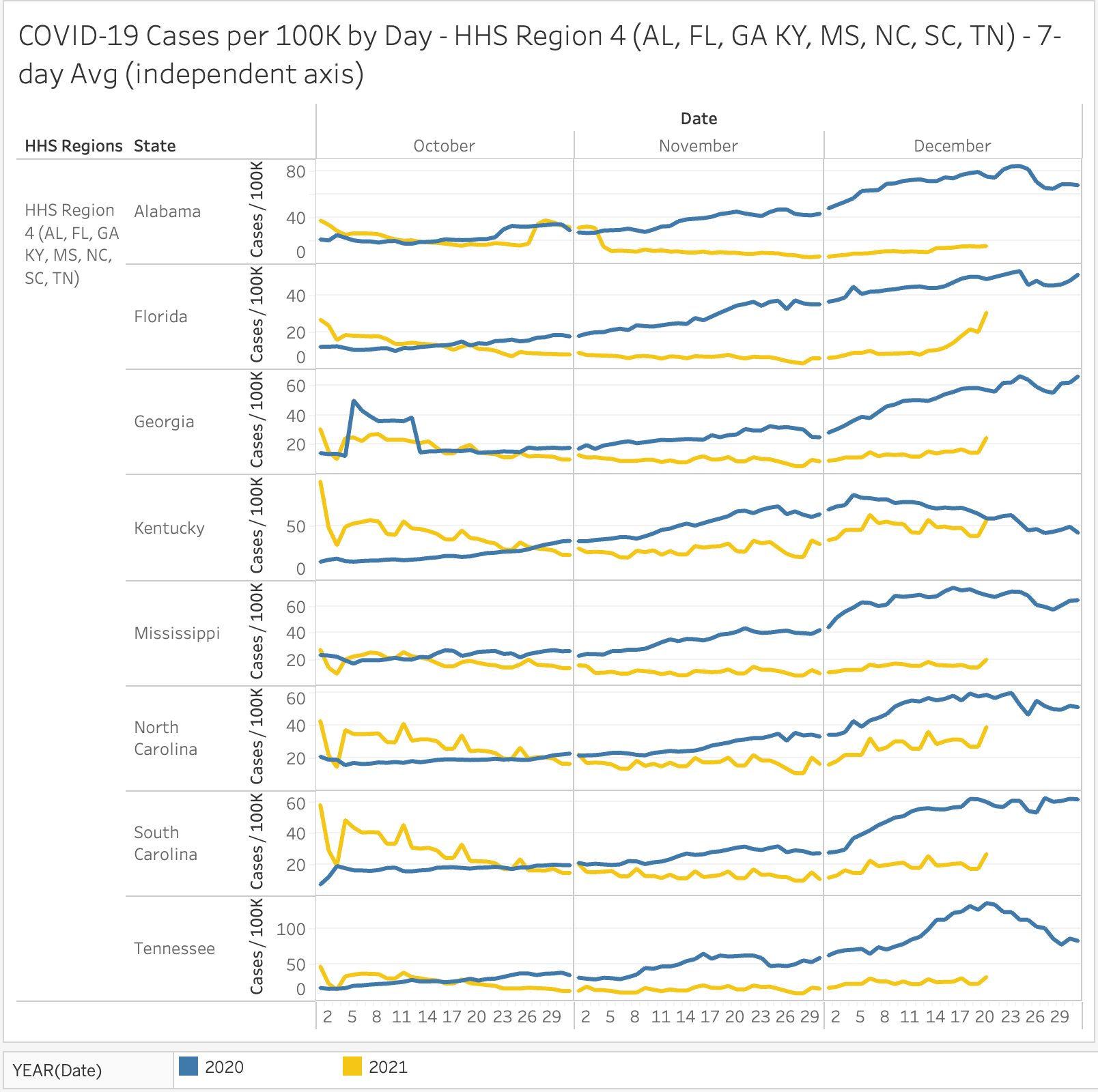 Region 4 - Coasting for a bit after their massive summer surge these states (including Florida) show Omicron is there. Hang on. The press is gonna go ballistic.