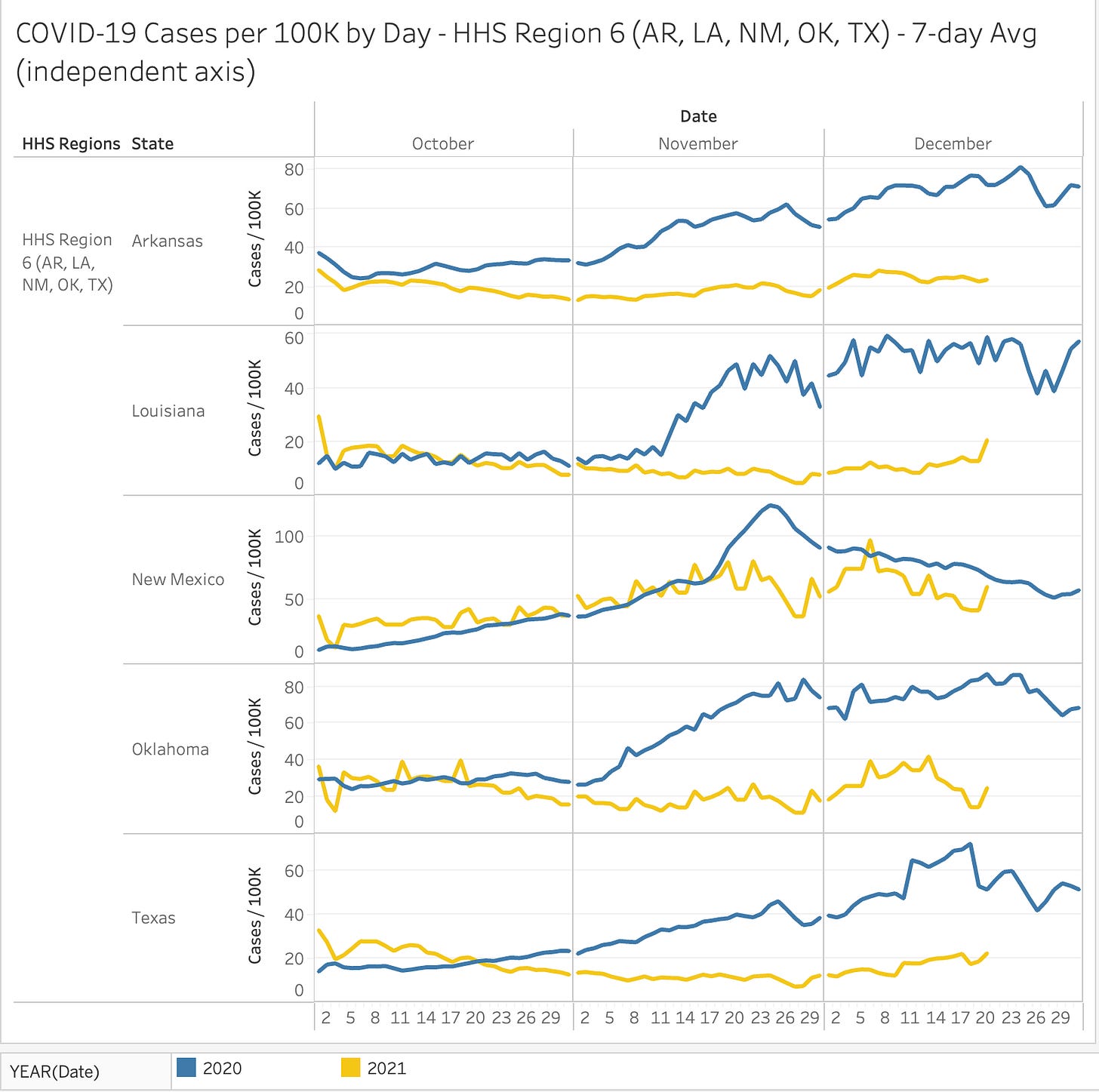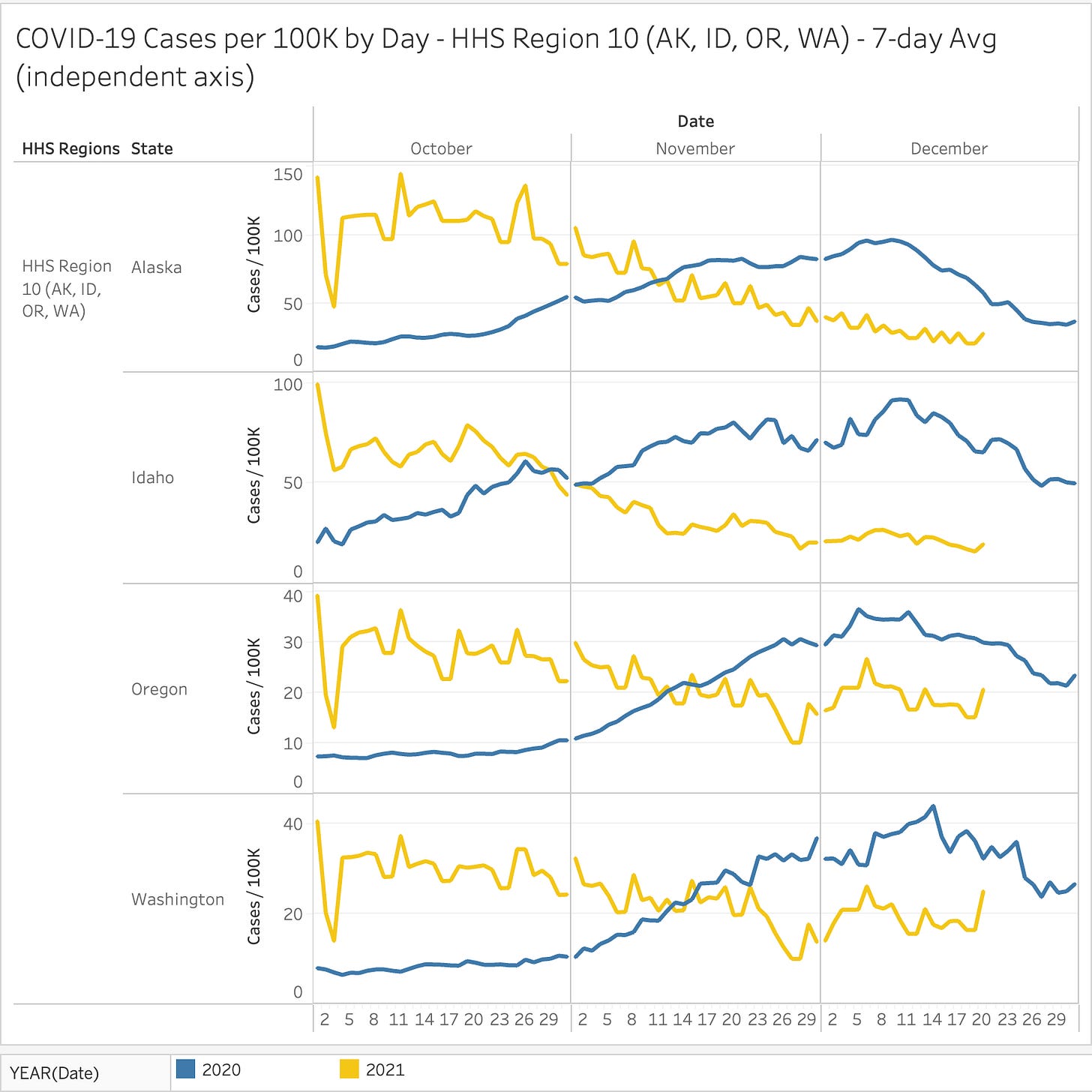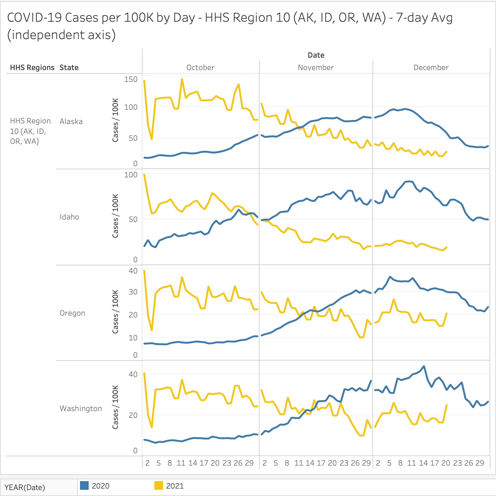 Region 10 - The Northwest (where this all seemingly began) thought it might skate by after a rough fall surge but Omicron looks to have found its way there. Oregon and Washington hooking upwards.