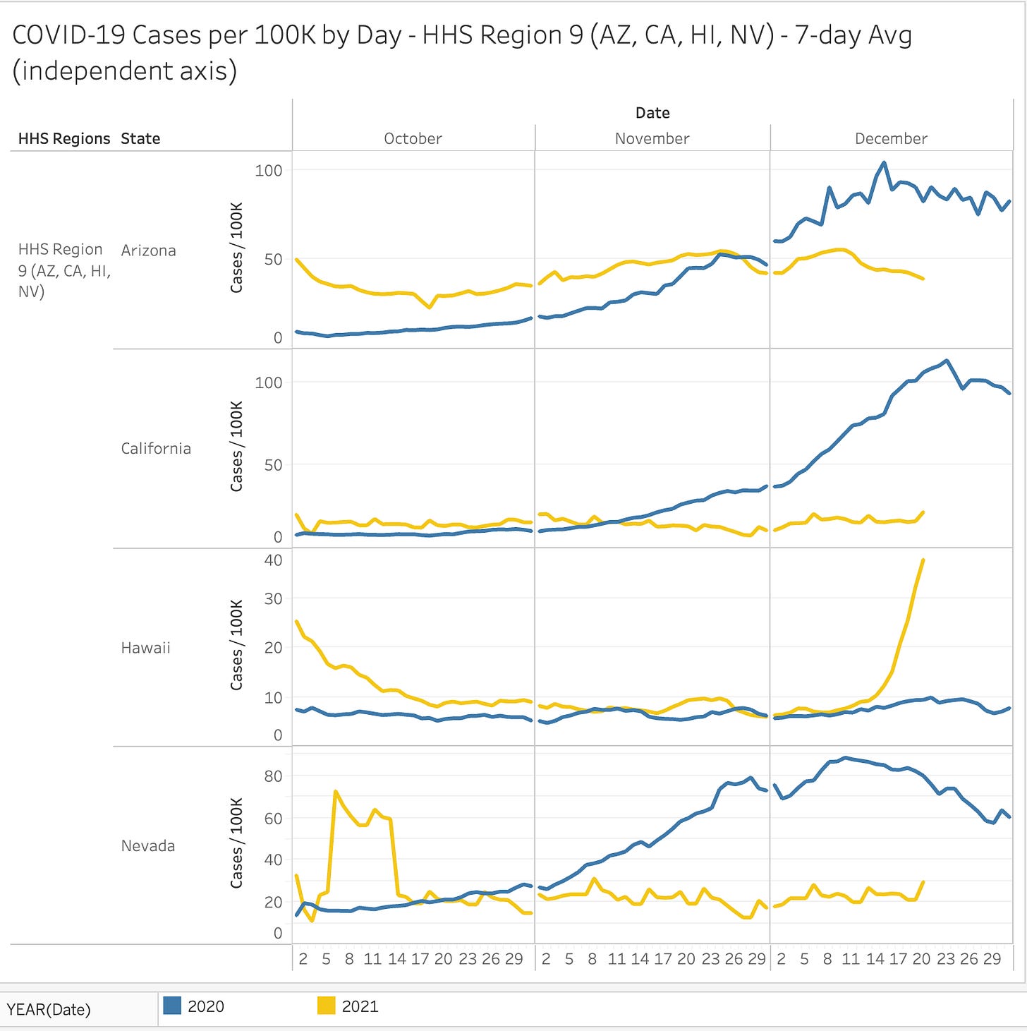 Region 9 (the west) - My soon-to-be-former state of California thought it had dodged a bullet but you can see things cranking up. Hawaii through the roof!