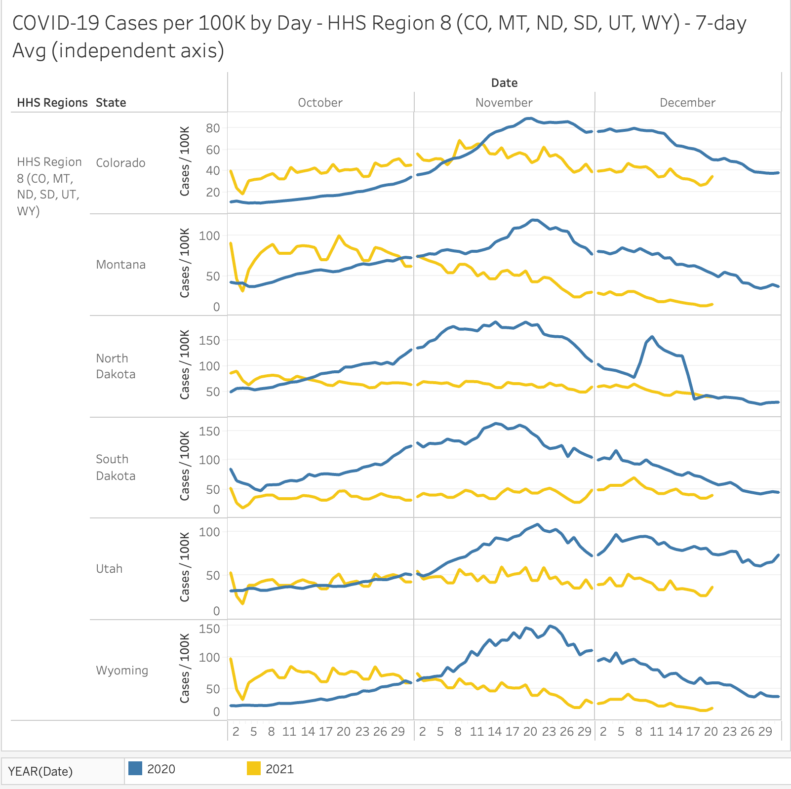 Region 8 (mountain west) - hasn’t had a lot of luck avoiding these surges but Omicron hasn’t quite taken hold there.