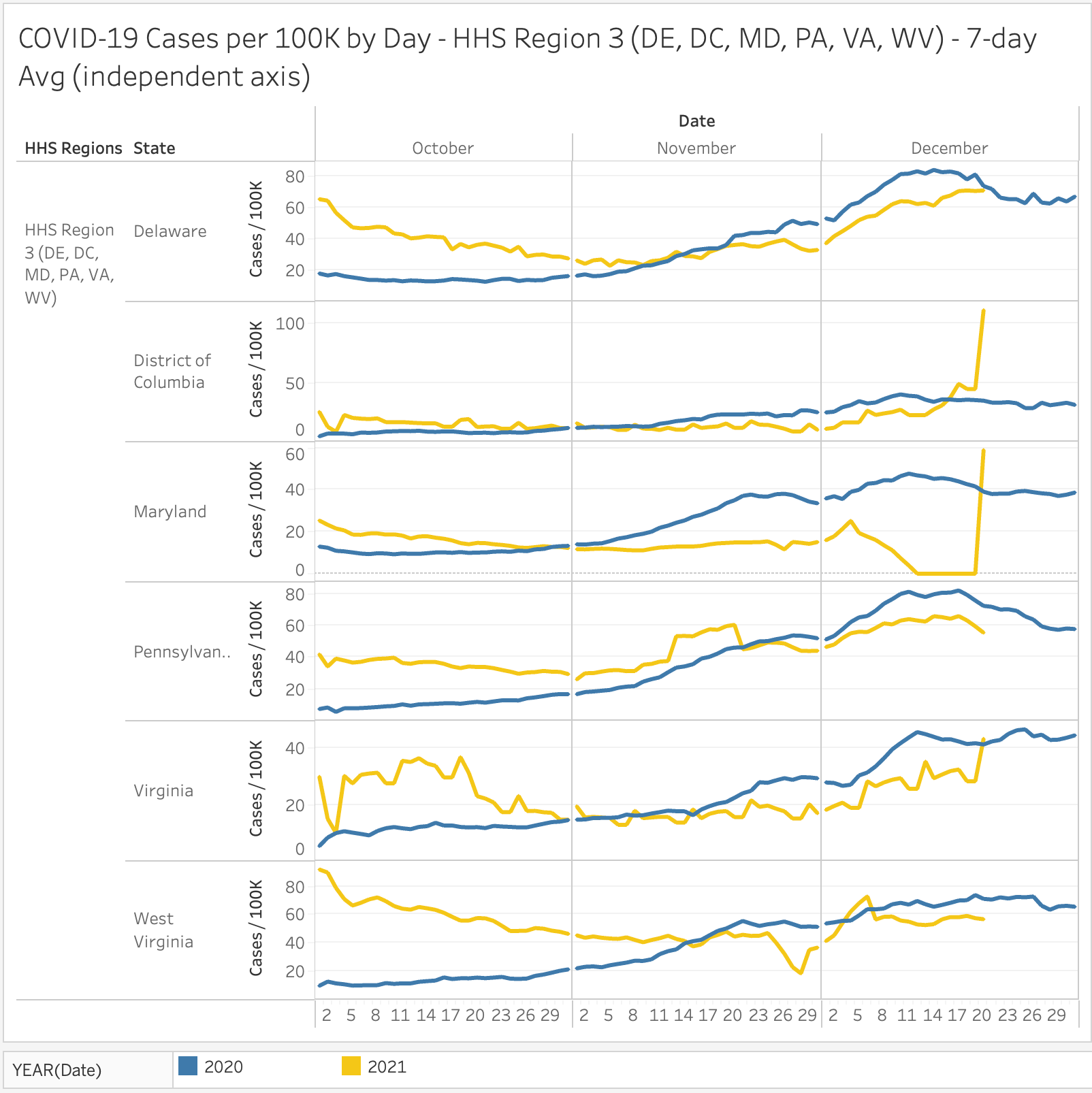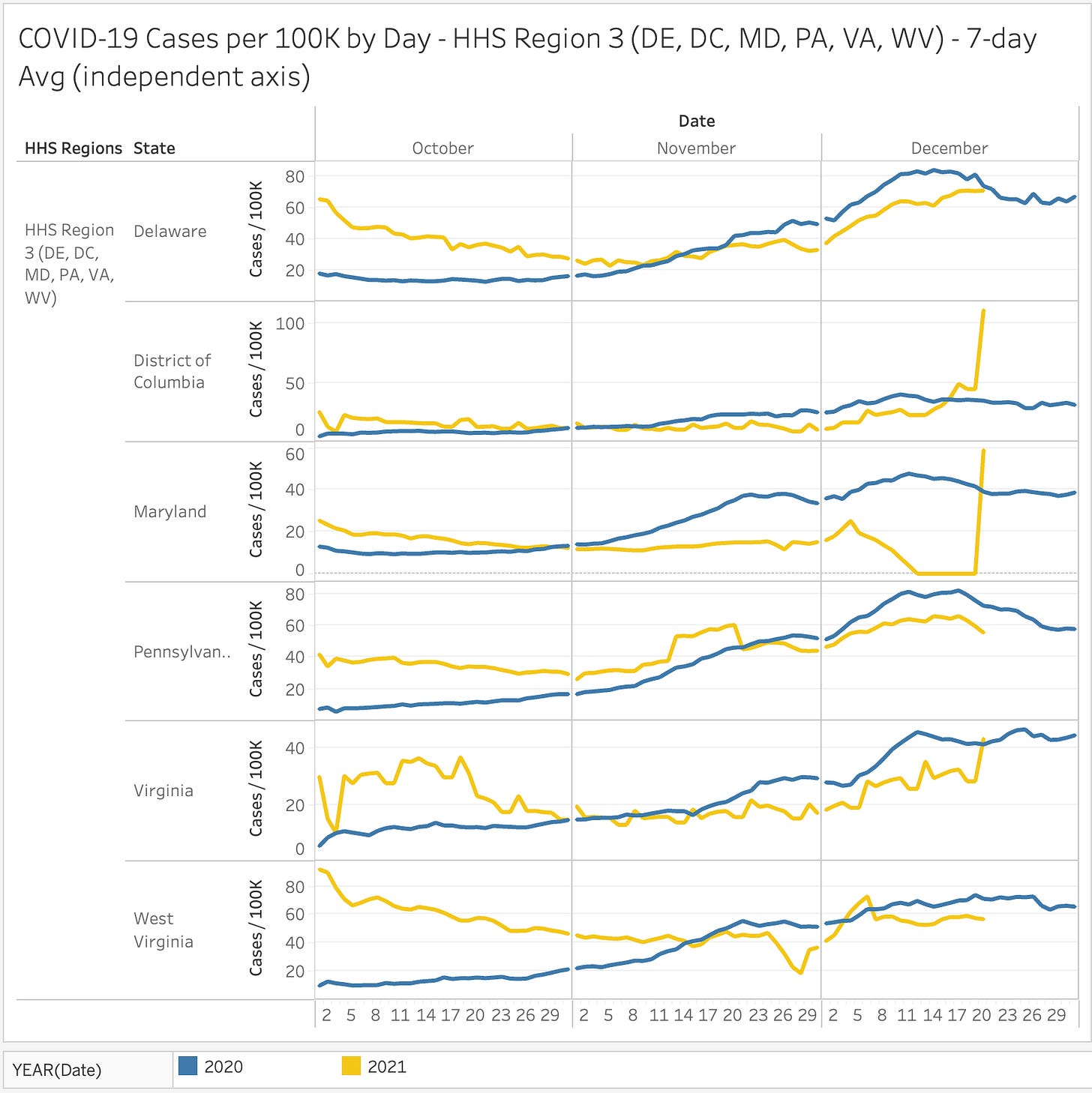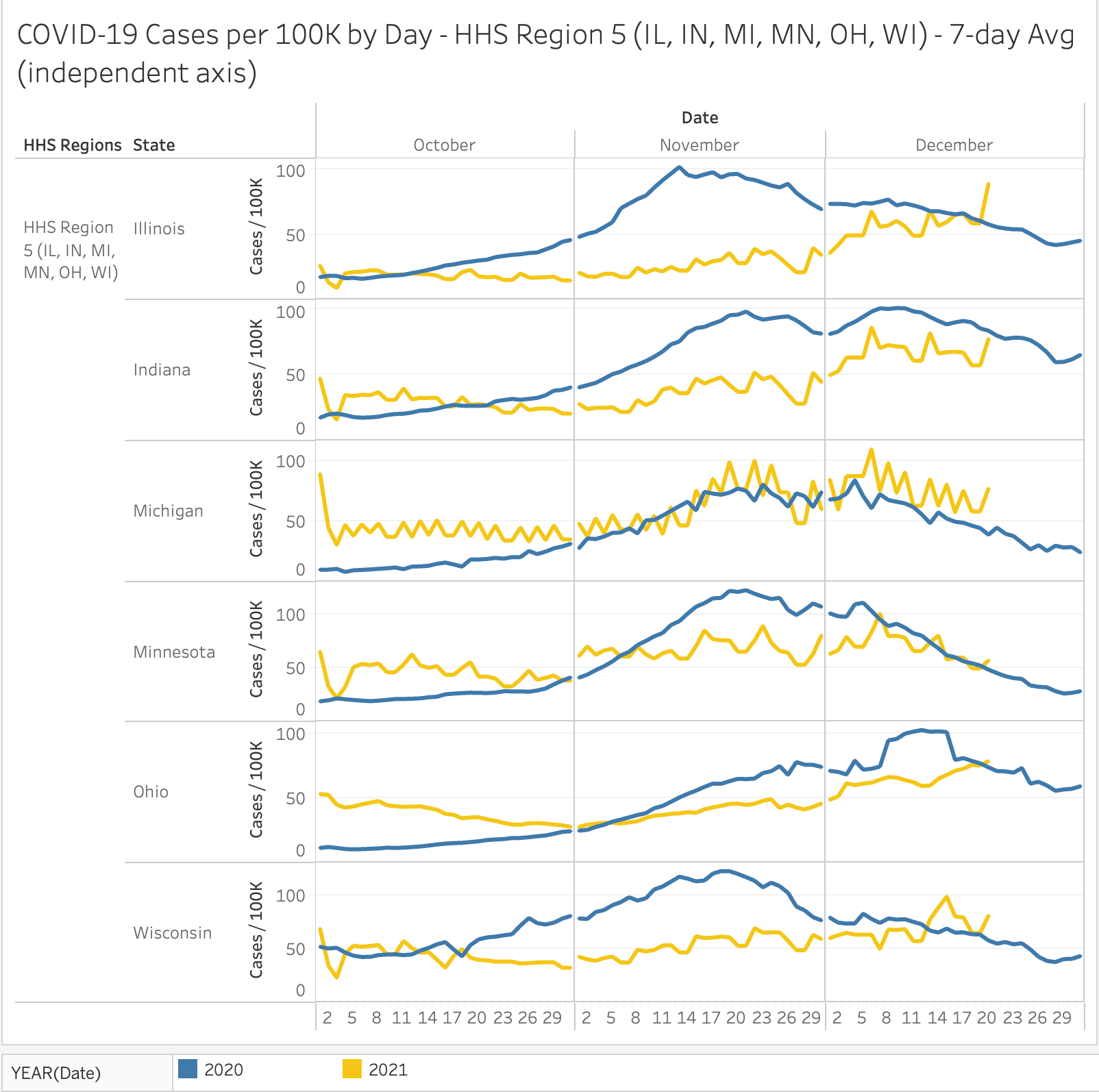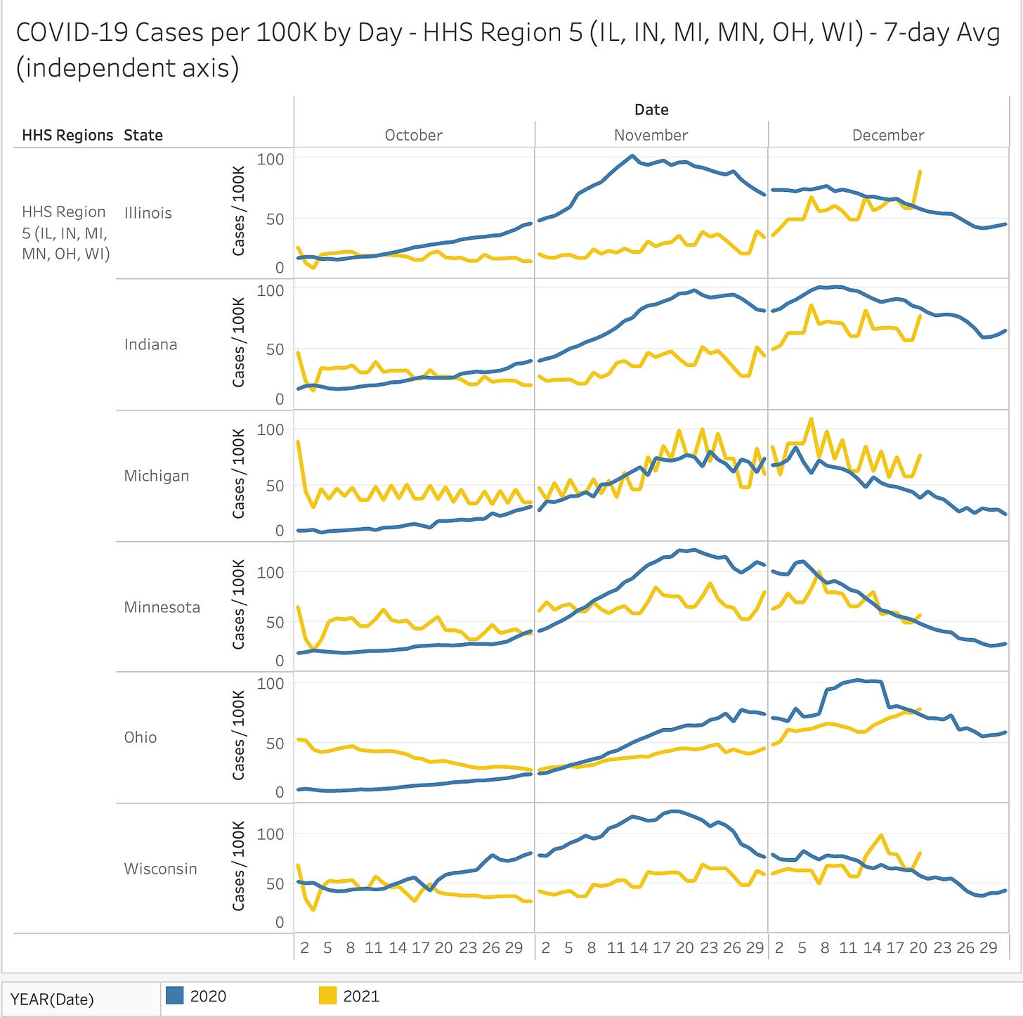 Region 5 - Back to back surges. First a winter Delta wave and now Omicron. Illinois about to go sky-high