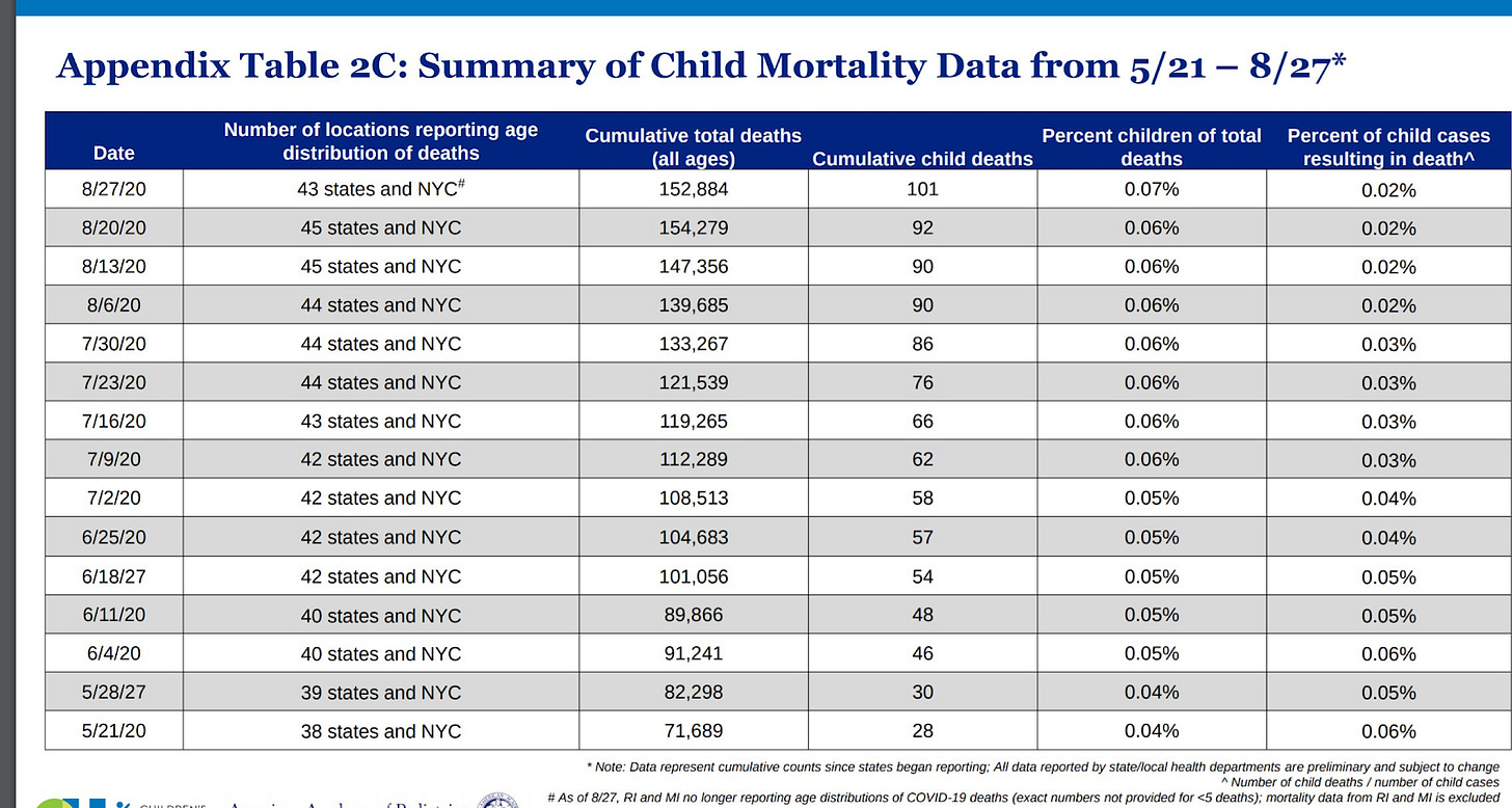Children and young adults are far more at risk at dying from Influenza or Pneumonia than from COVID-19.