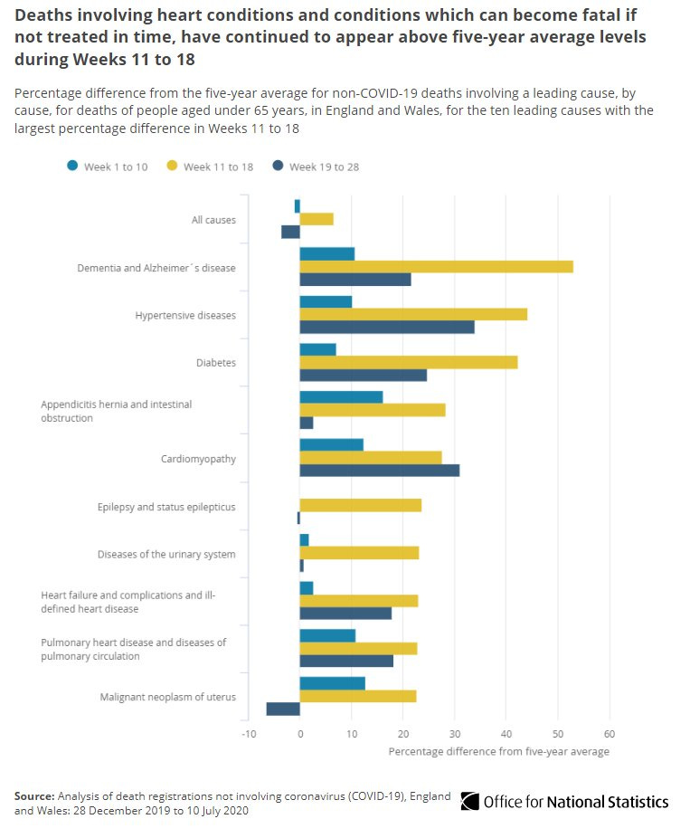 The most common “underlying condition” among UK’s excess deaths excess deaths was Dementia,Alzheimers, and Diabetes, .