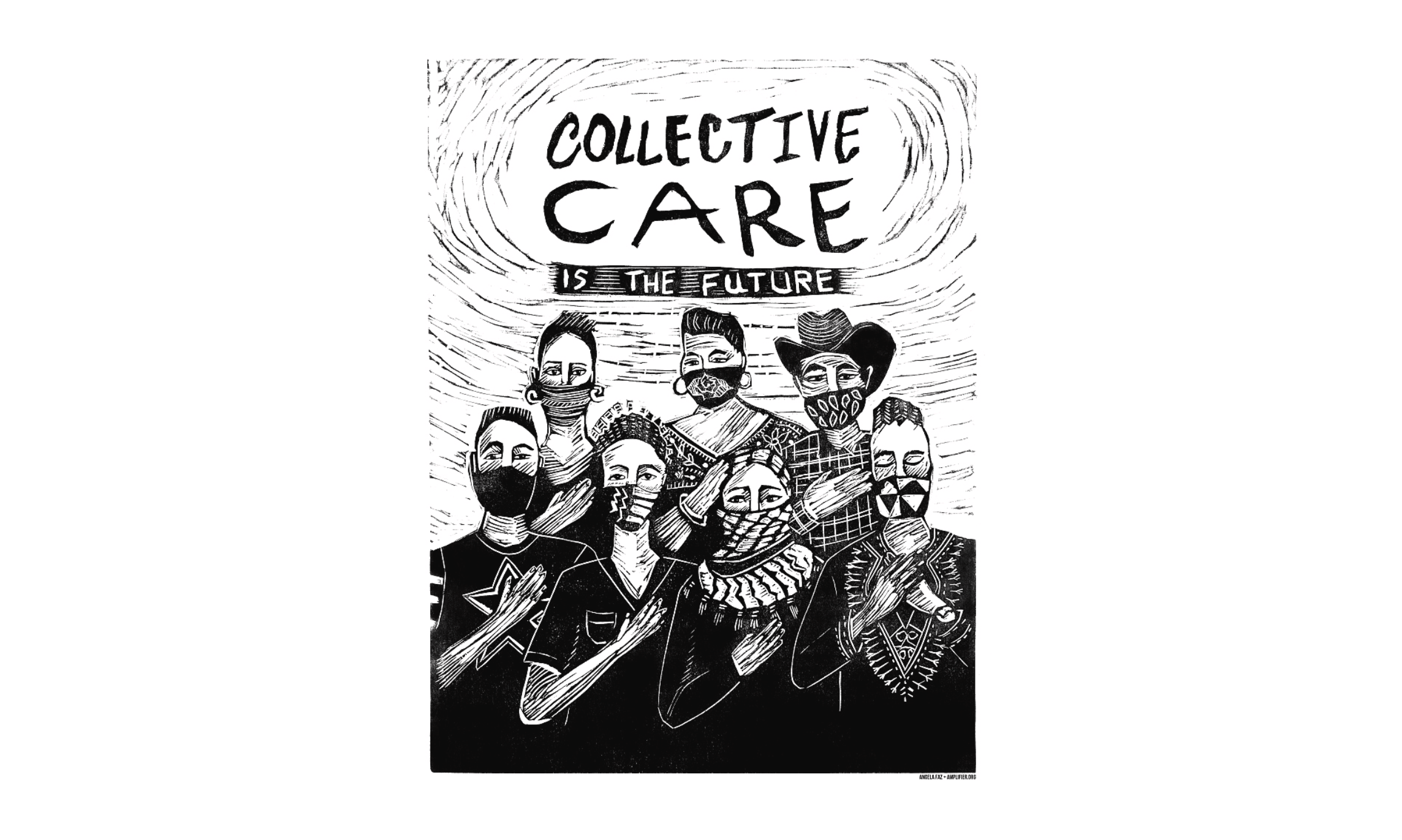 "What happens to one happens to all. Linoleum block, 2020." Angela Faz