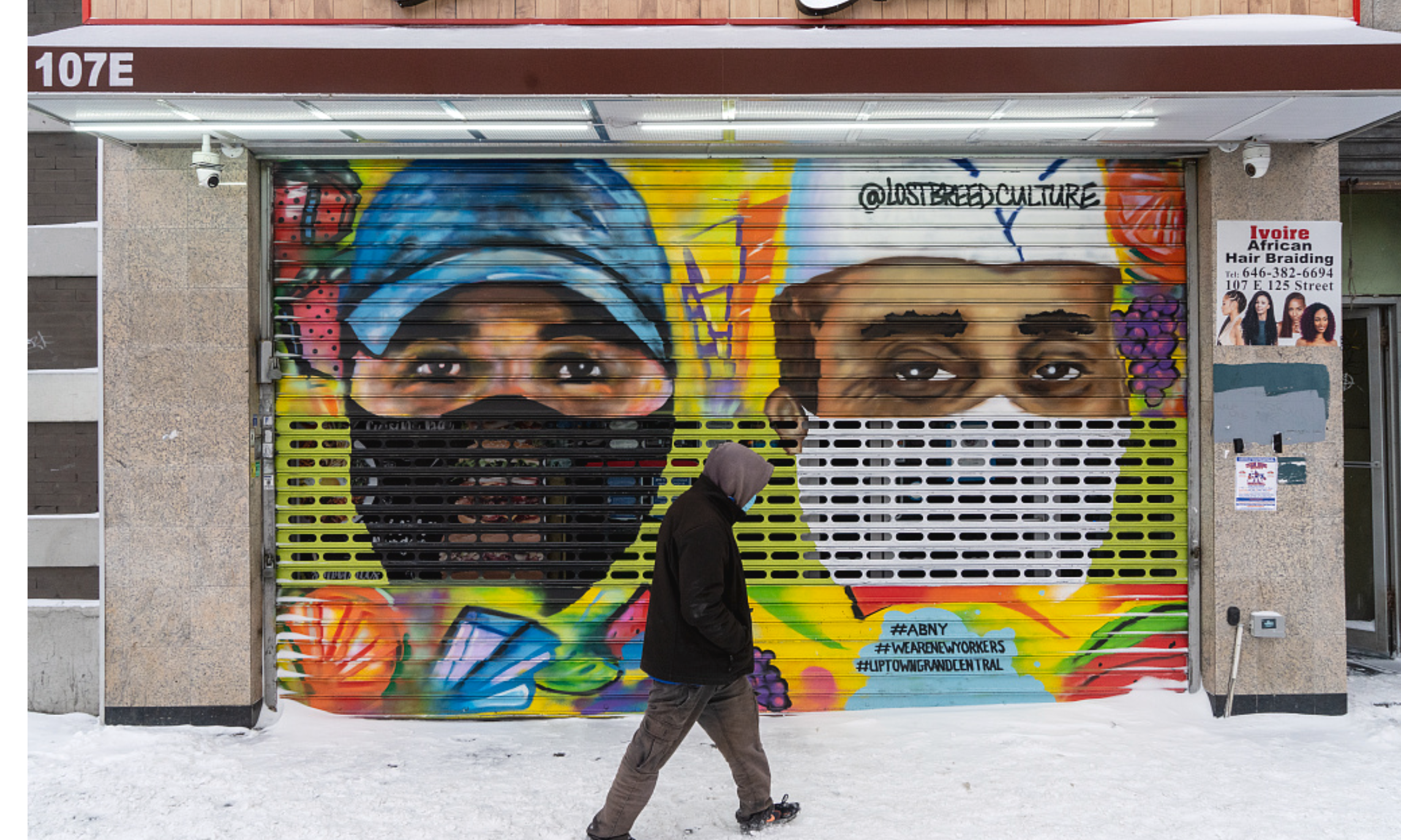 Title: Masked faces, mural by Lostbreedculture. 107 E. 125th St., Harlem
