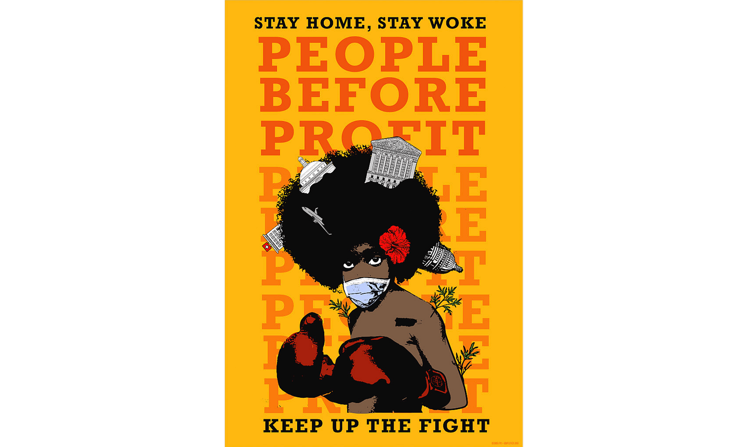 Title: People Before Profit, Stay Home, Stay Woke, Keep Up the Fight