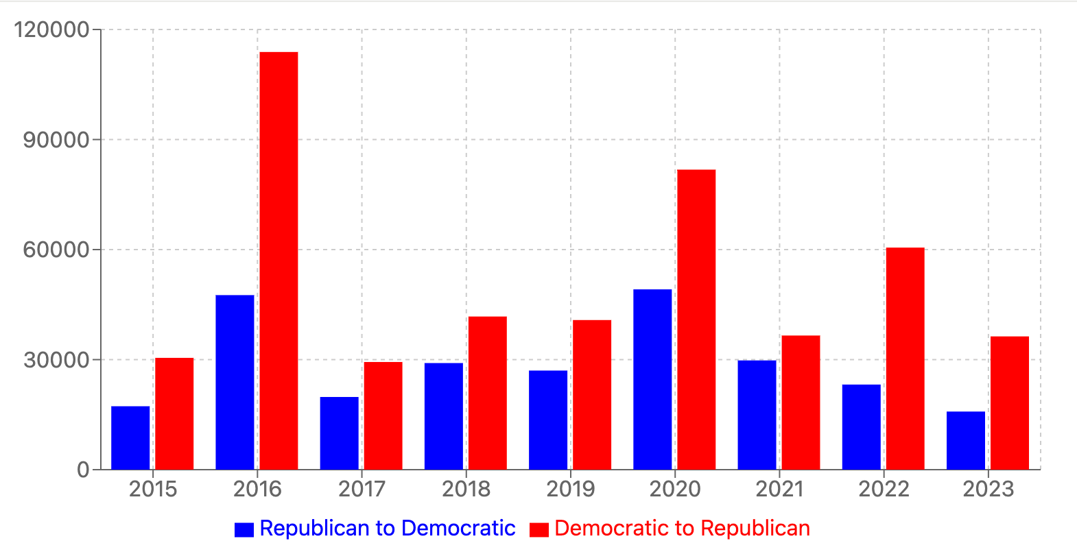 One of the most remarkable data points in Pennsylvania is the evolution of Republican voter registration. Pennsylvania is one of the few states that tracks and publishes detailed registration data, including shifts between parties—D to R, R to D, and D to Independent—down to the county level. Over the past decade, Democratic registrations have fallen from 4 million to just over 3.8 million, while Republican registrations have surged from under 3 million to nearly 3.5 million. Nowhere is Trump's unique appeal to the blue-collar class—historically loyal to the Democrats—more apparent than in Pennsylvania, where his influence has fueled this shift in party allegiance.