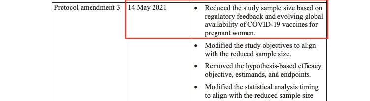 “The environment changed during 2021 and by September 2021, COVID-19 vaccines were recommended by applicable recommending bodies (e.g., ACIP in the U.S.) for pregnant women in all participating/planned countries, and as a result the enrollment rate declined significantly.”