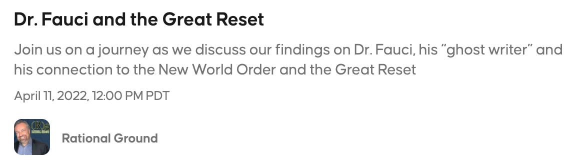 Join is us today on our podcast at noon pacific / 3pm eastern. We’ll be talking about Dr. Fauci and his penchant for the Great Reset!