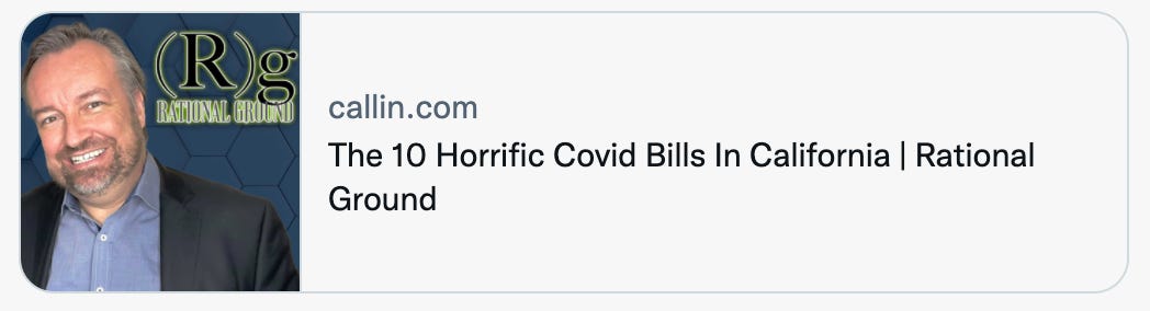 Transcript and audio up on our Callin podcast for our session with our friend Laura talking about the 10 ridiculous Covid bills coming to a state near you (after California).