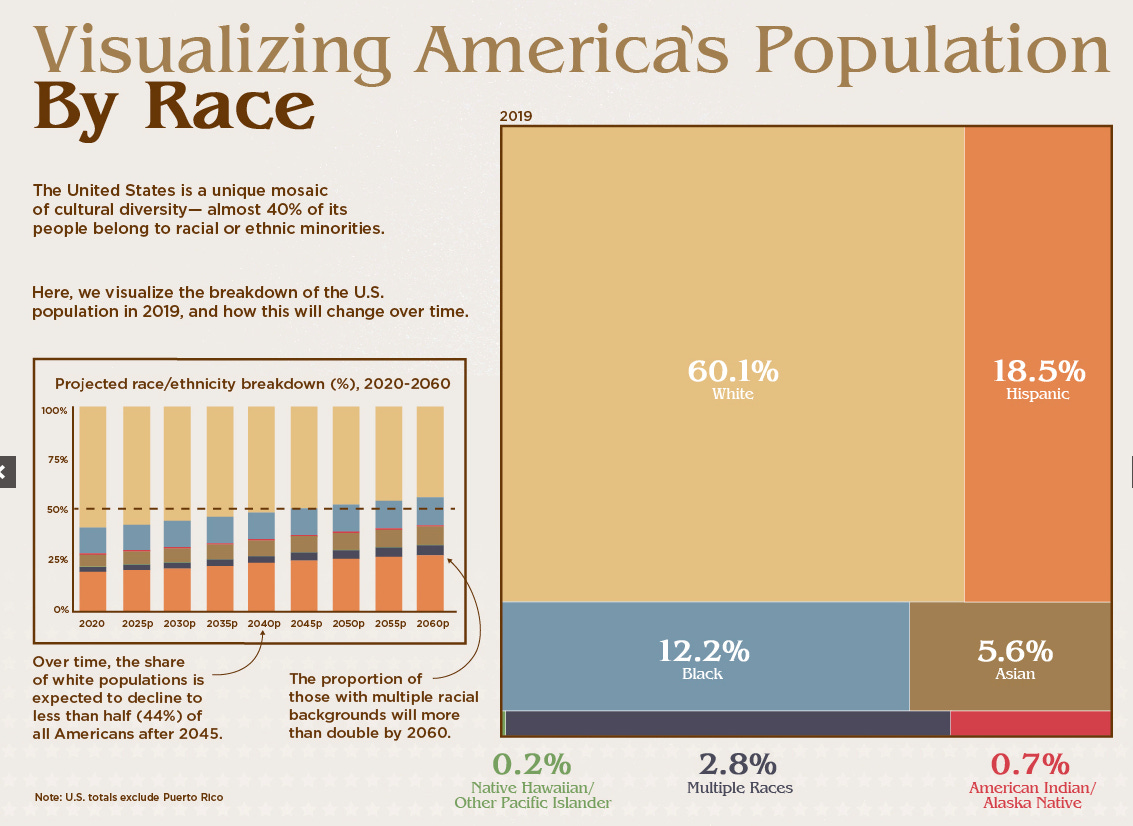 Visual Capitalist shows the U.S. population distribution of race like this: