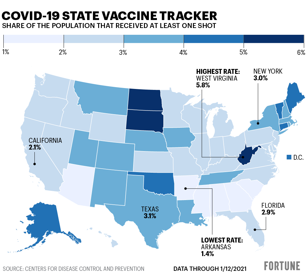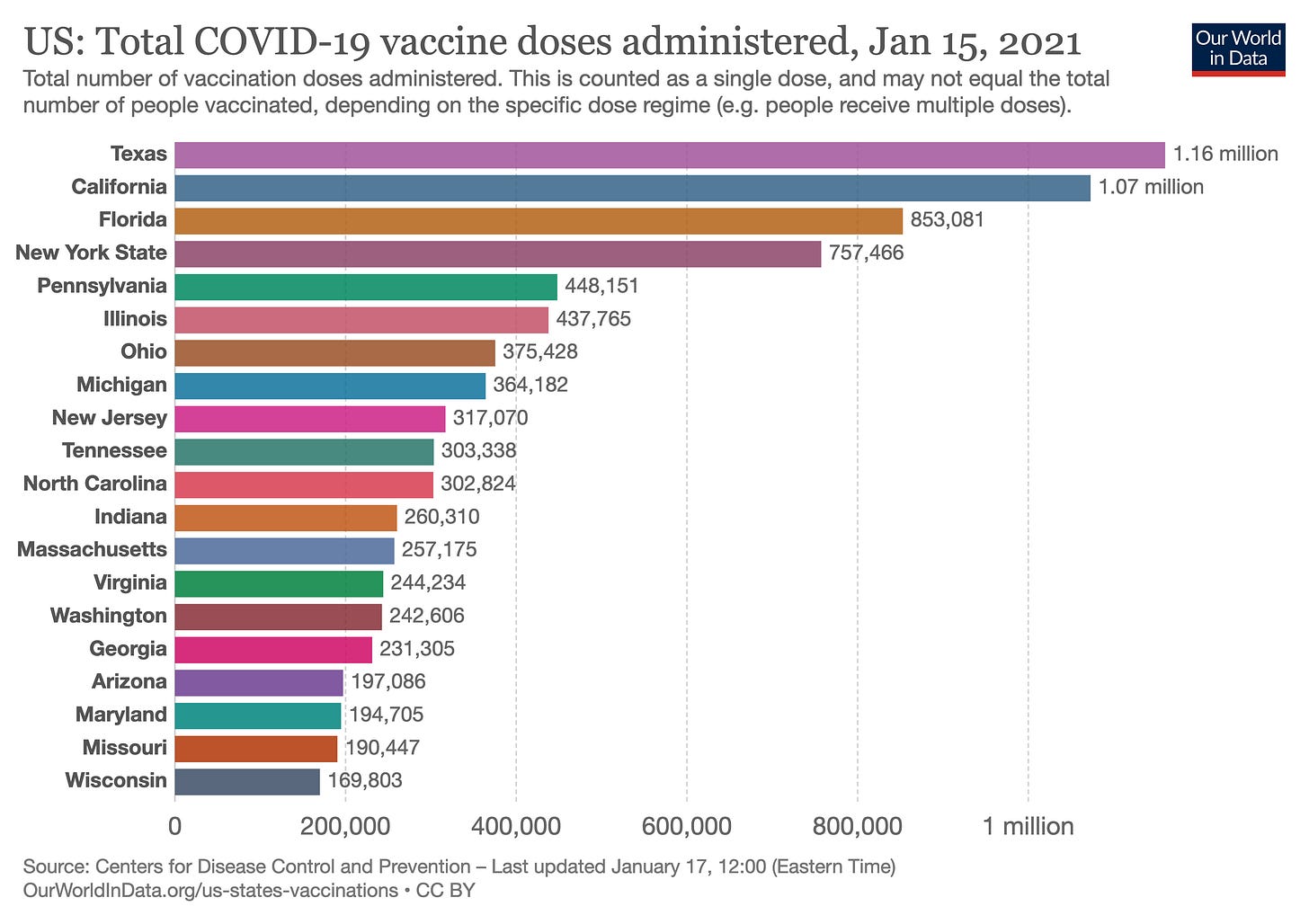 As of January 15th, Texas leads the way in the total number of vaccine doses administered.