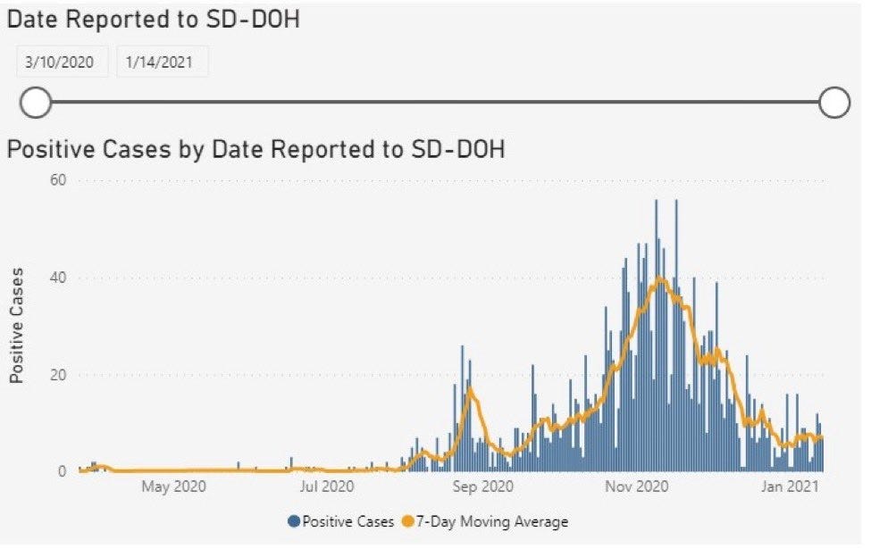 South Dakota Positive Cases - 3/10/20 to 1/14/21