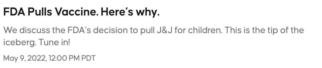 Join us today on the broadcast/podcast as we review the LATEST vaccine issues making their way into the public arena - they are many and very concerning.