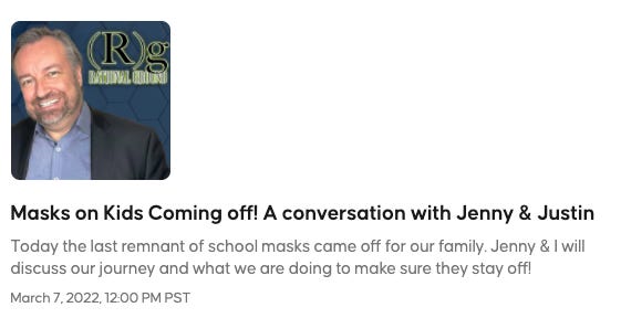 First, join us today at noon. I’ll be tag-teaming with my amazing wife Jenny discussing the final un-masking of our kids and the journey it took to get there.