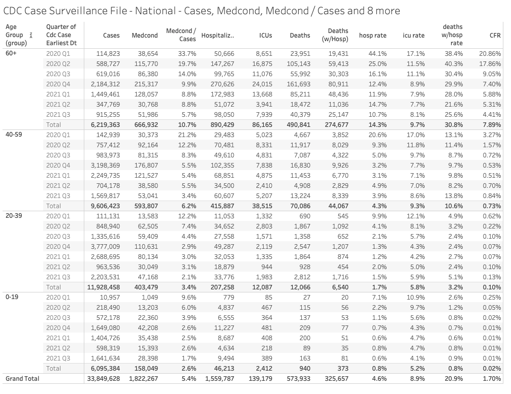 Per usual, we’ll end the week with a good download of the update Case Surveillance File. XLS format. Everything is logged by age bracket and month.