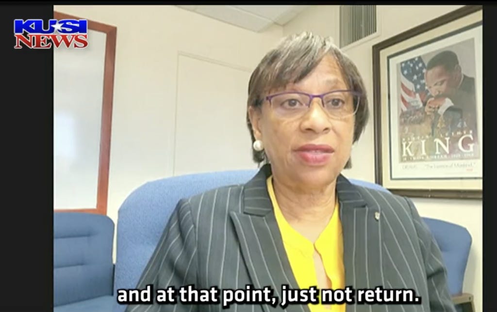 Recently, SDUSD President Sharon Whitehurst-Payne appeared on local news channel KUSI where she defended their newly RE-instituted mask mandate. She suggested that if students in summer school weren’t comfortable wearing masks they should not return to class. (watch the segment here)