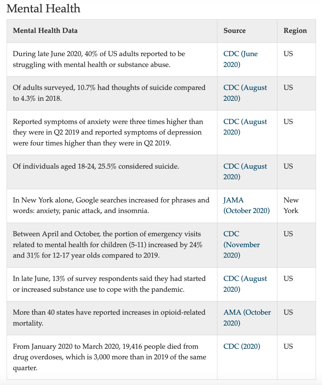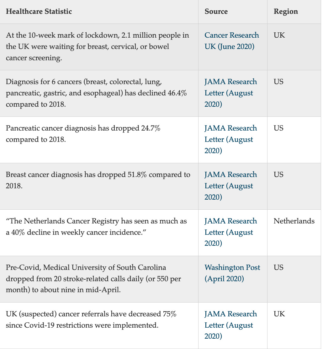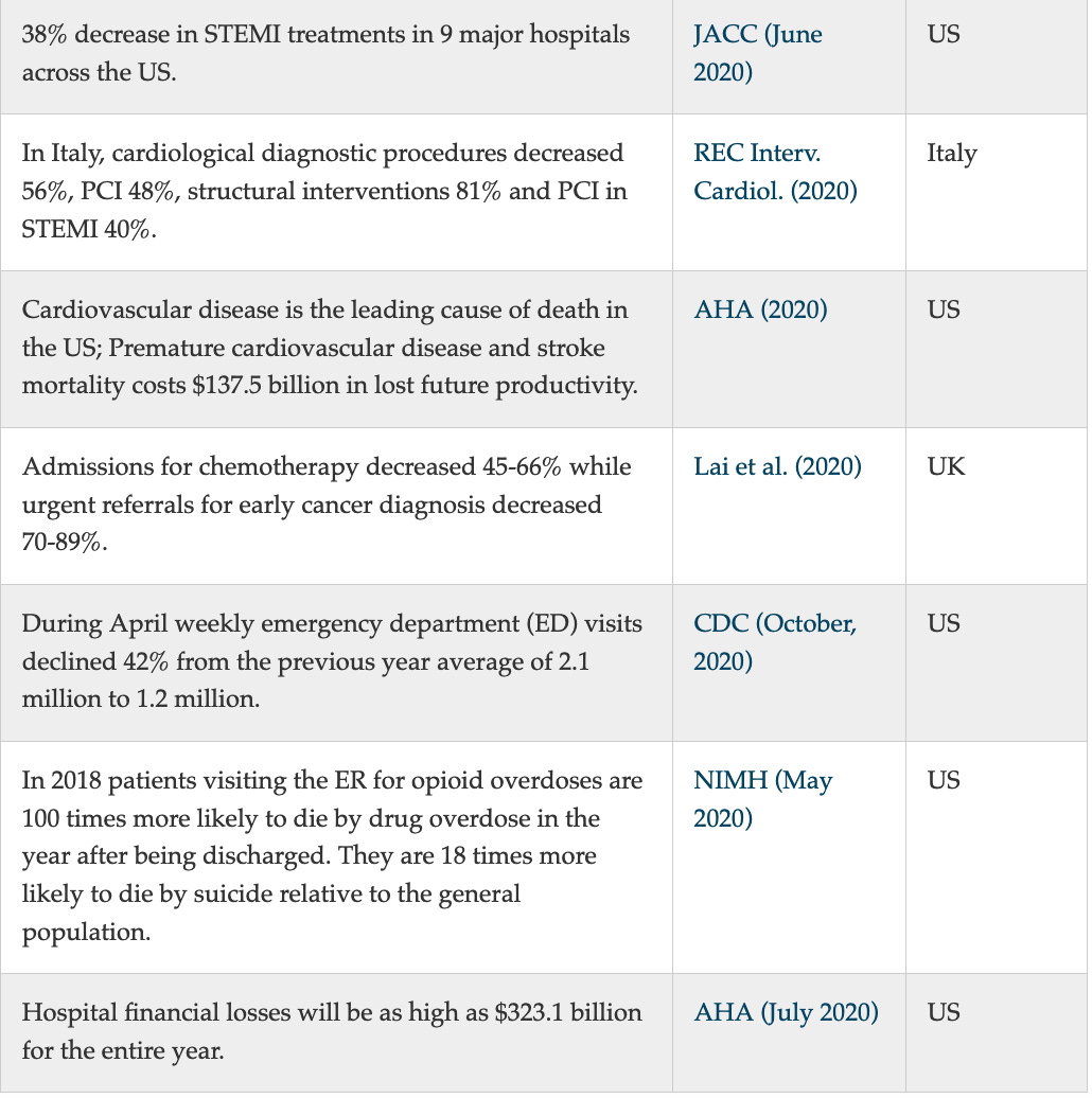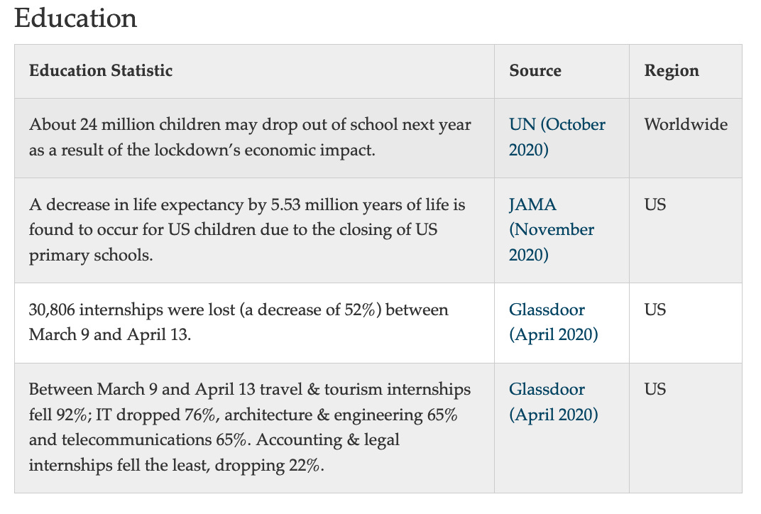 AIER put together an excellent series of graphs summarizing the costs of the lockdown on mental health, the economy, unemployment, education, healthcare, and crime.