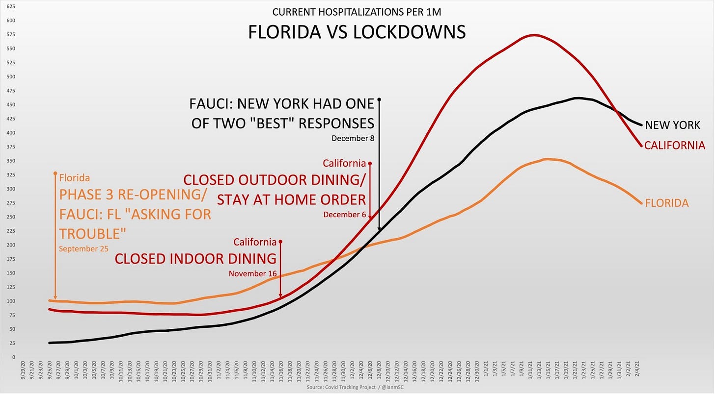 New York has the highest hospitalization rate in the country yet Florida’s done better for months.