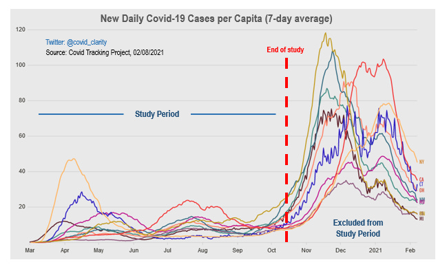 A new CDC study says mask mandates may work. It studied mandates in 10 states March-October 2020. The study stopped in October. Now look what happened after October in the exact same states they were studying.