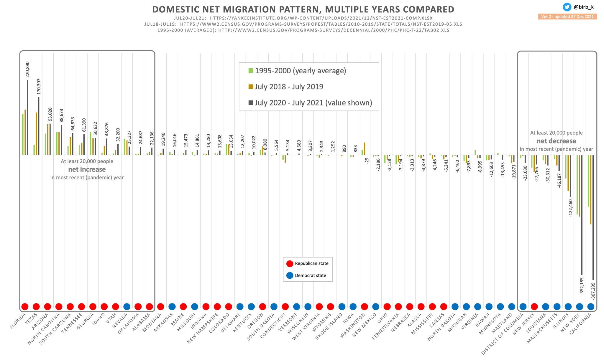 Chart 6/10. Digging back in time, this chart adds average annual migrations from 1995-2000. The migration trend from blue states to red states was evident even back then, but again Covid & Covid policies appear to have accelerated movement at a statistically significant scale.