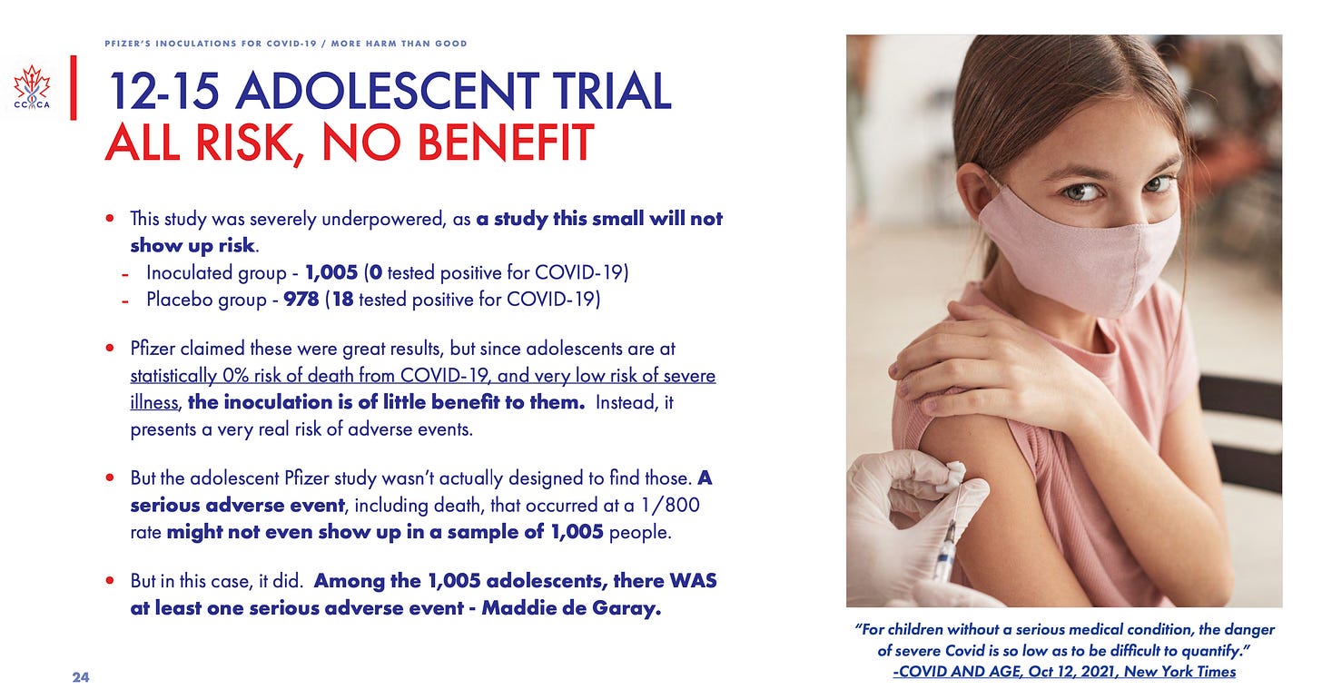 The Canadian Covid Care Alliance has produced an excellent Powerpoint/PDF with all the information you need to understand the Pfizer vaccine, it’s development, and the challenges it brings with mass-inoculation.