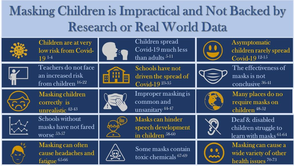Our colleague Emily Burns has crafted a masterful letter to her school board about kids and masks. It is choke full of great details, charts, links to studies and more. Hop on over to her website The Smiles Project and see all of the letters she’s devised to help you in your fight against the lockdowns.