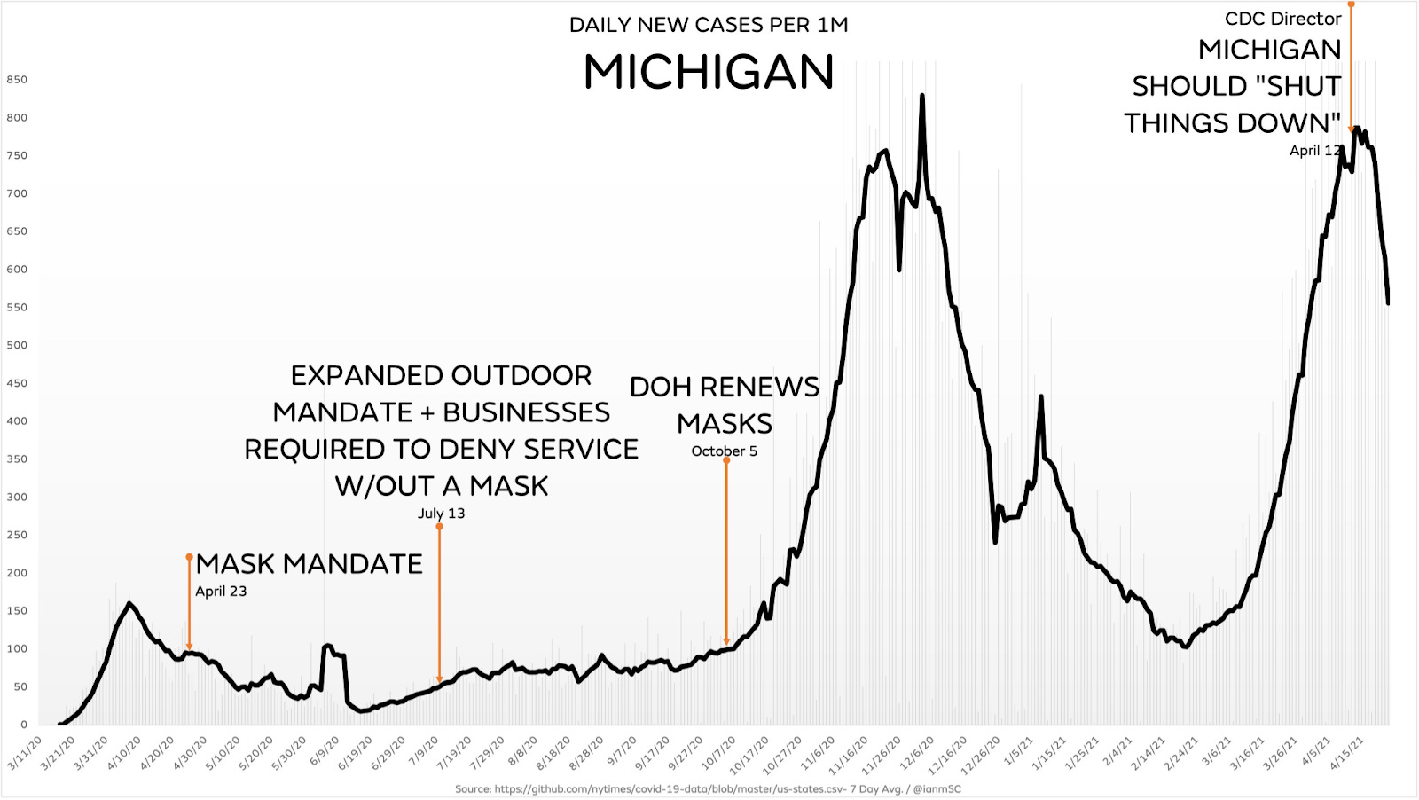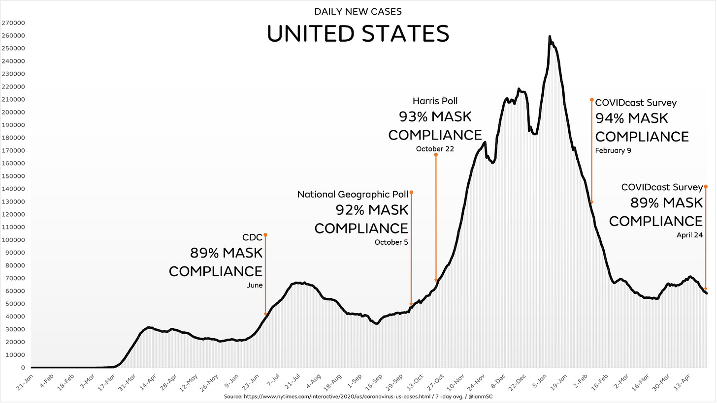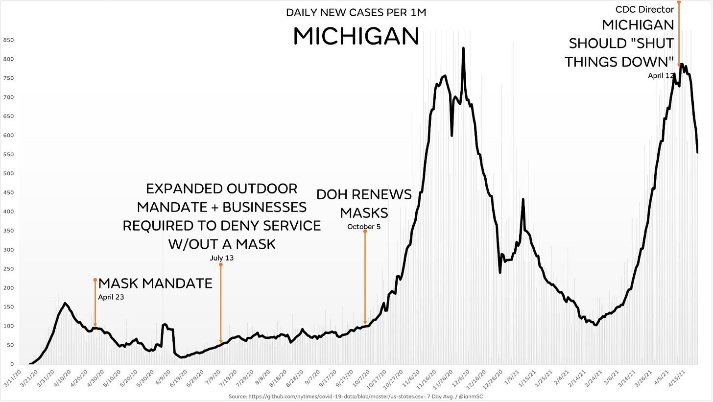Warm weather is here and the voices are loud—it’s safe to be outdoors, and policy should reflect that. This week, outdoor transmission has dominated the conversation with news outlets big and small covering the relative safety of being outside—without a mask. Finally, on Tuesday, the CDC updated their guidelines to reflect that vaccinated people do not need to wear masks outdoors. Meanwhile, some cities and states continue to increase mask mandates, with Michigan extending theirs to young children.