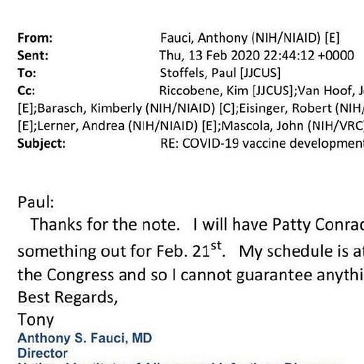 And it was clear from the FOIA request that Dr. Fauci was just a political beast and the gain of function issues all sorts of things highest paid I mean