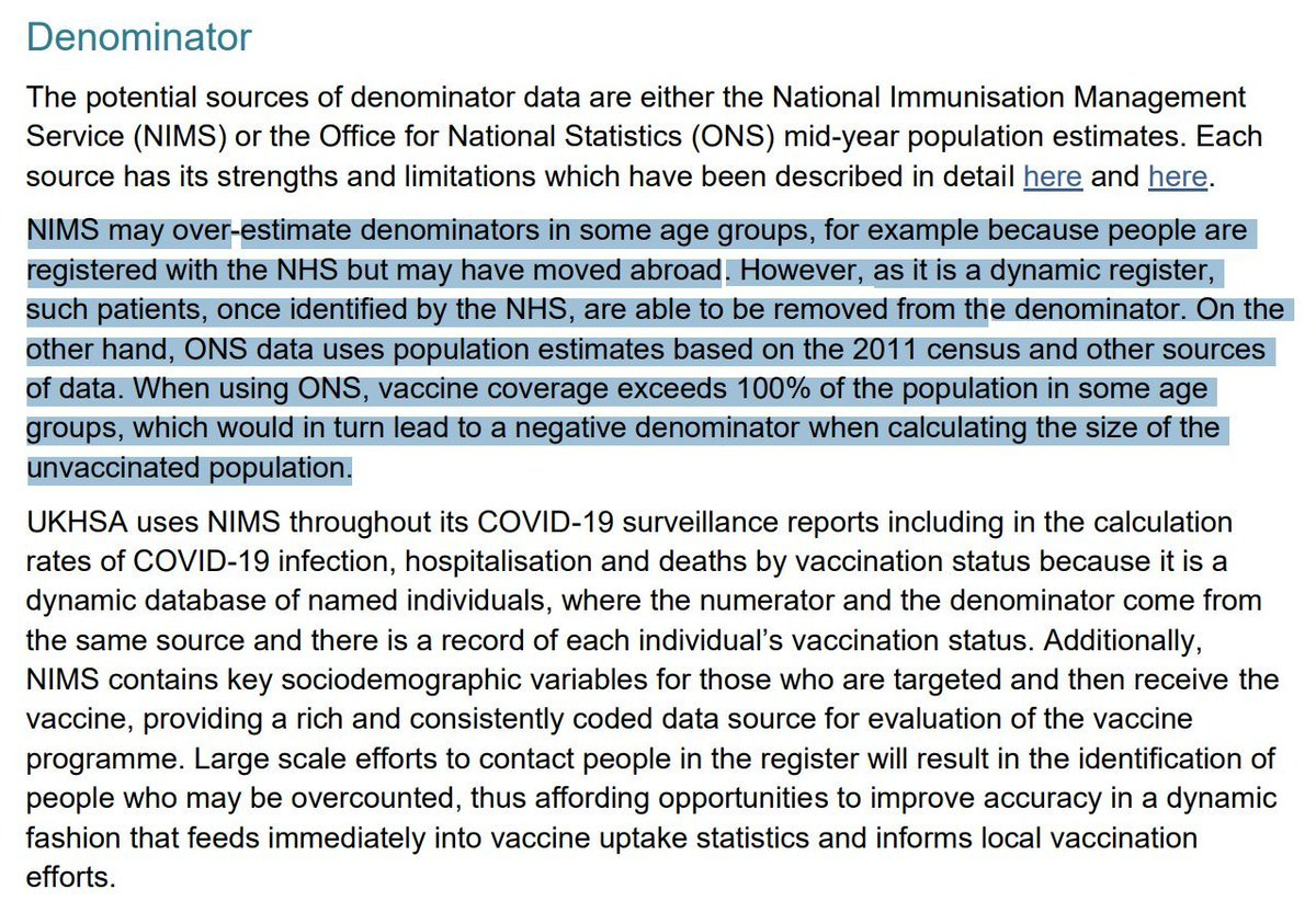 For those questioning the use of NIMS population figures in the denominator versus those from ONS, UK HSA again defends its use of NIMS data in this report on page 29 & in blogs linked to from this page.