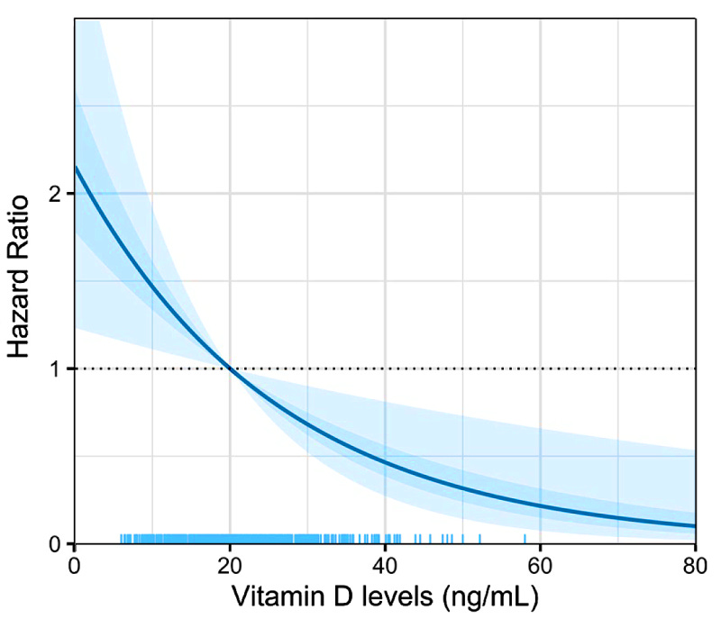 The risks of hospitalization and serious harm resulting from low 25-hydroxyvitamin D levels are much more acute than depicted in the above graph, as those who are hospitalized generally have lower levels than those who are not.