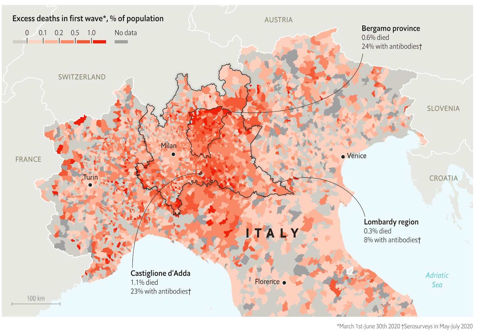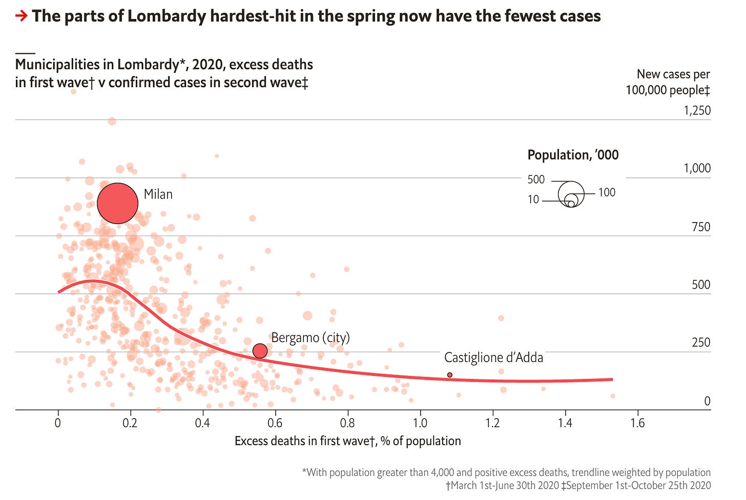 Some experts have advised letting the young and healthy get covid-19, in order to approach such herd immunity. European data suggest this goal remains distant: within countries, the regions with the most cases in the spring also tend to have the biggest outbreaks now. Yet broad averages can obscure local variation. And new Italian data show that the worst-hit places do now enjoy some degree of immunity.
