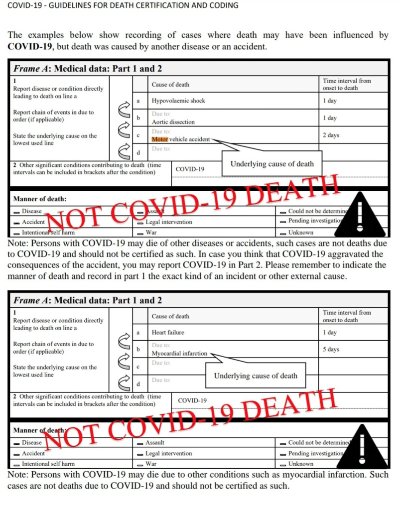 Although a few certifying doctors made it clear that they thought the COVID-19 test was incidental (at best) to the death by writing things like “Asymptomatic positive COVID-19 swab” or “COVID-19 6 months ago,” these deaths were still counted as COVID-19 deaths.