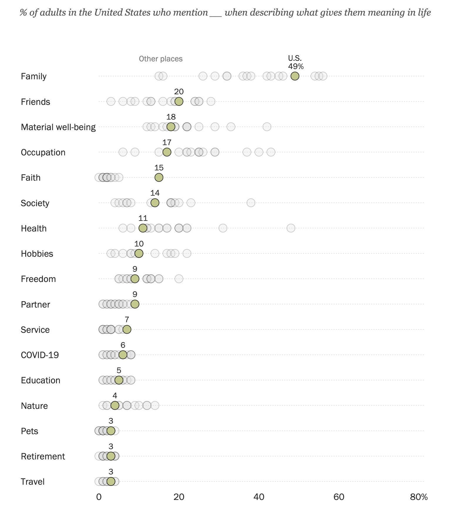 Pew research recently conducted a poll asking Americans what gives their life meaning.