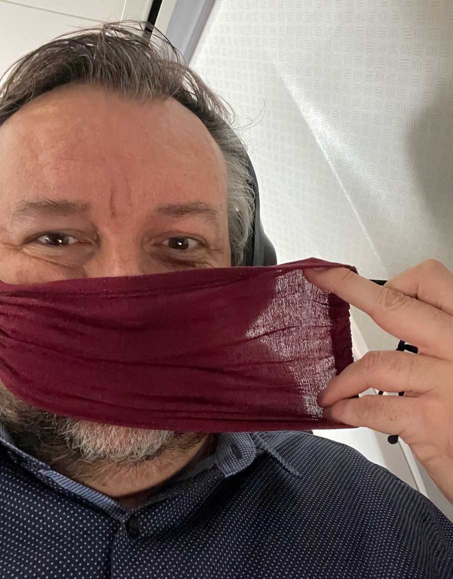 I’m currently mid-air. American has been pretty reasonable. No one hounding me to put on my mask. I've had one kind reminder to keep it over my nose. Thankfully, @JennyErikson (my better half) found us these cheesecloth masks :) Anyone wanna guess the penetration levels of these bad boys?