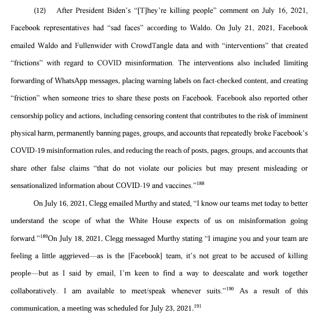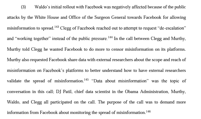 3/ When Waldo was rolling out Facebook relations, things got tense. The White House and the Office of the Surgeon General were attacking Facebook for allowing misinformation to spread. Murthy even told Clegg from Facebook that he wanted more censorship on its platforms!
